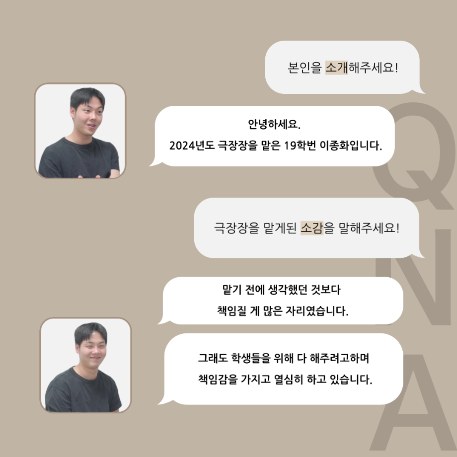 본문 시작 홈으로 커뮤니티 학과소개 입학정보 교수소개 학과과정 커뮤니티 공연예매 안내 홈페이지가이드 포토갤러리 공지사항 포토갤러리 작품DB 동아리 학사일정 학생회 포토갤러리 페이스북 트위터 프린트 '품'위있는 인'터뷰' - 24년도 극장장 <이종화> 연기예술학과 3348 2024-07-12 안녕하십니다 24년도 학회 ‘품‘ 입니다. 학회 ‘품’의 세 번째 인터뷰로 세명대학교 연기예술학과 24학년도 극장장인 이종화 학우와 인터뷰 하는 시간을 가졌습니다. 극장장을 맡게된 소감과 극장은 어떤 의미가 있는지, 파트장과 학과생에게 전하고 싶은 말 등을 질문하는 시간을 가졌습니다. 앞으로 있을 인터뷰 컨텐츠인 ‘품터뷰’ 많은 사랑 부탁드립니다. 목록 이전'품'위있는 인'터뷰' - 24년도 부학회장 <최가람> 다음 제5회 대한민국 신직업·미래직업 아이디어 공모전 담당부서 : 연기예술학과 담당자 : - 연락처 : 043-649-1733 최종수정일 : 2024-10-26 만족도조사 만족도 조사 이 페이지에서 제공하는 정보에 대하여 만족하시나요? 매우만족 만족 보통 불만족 매우불만족