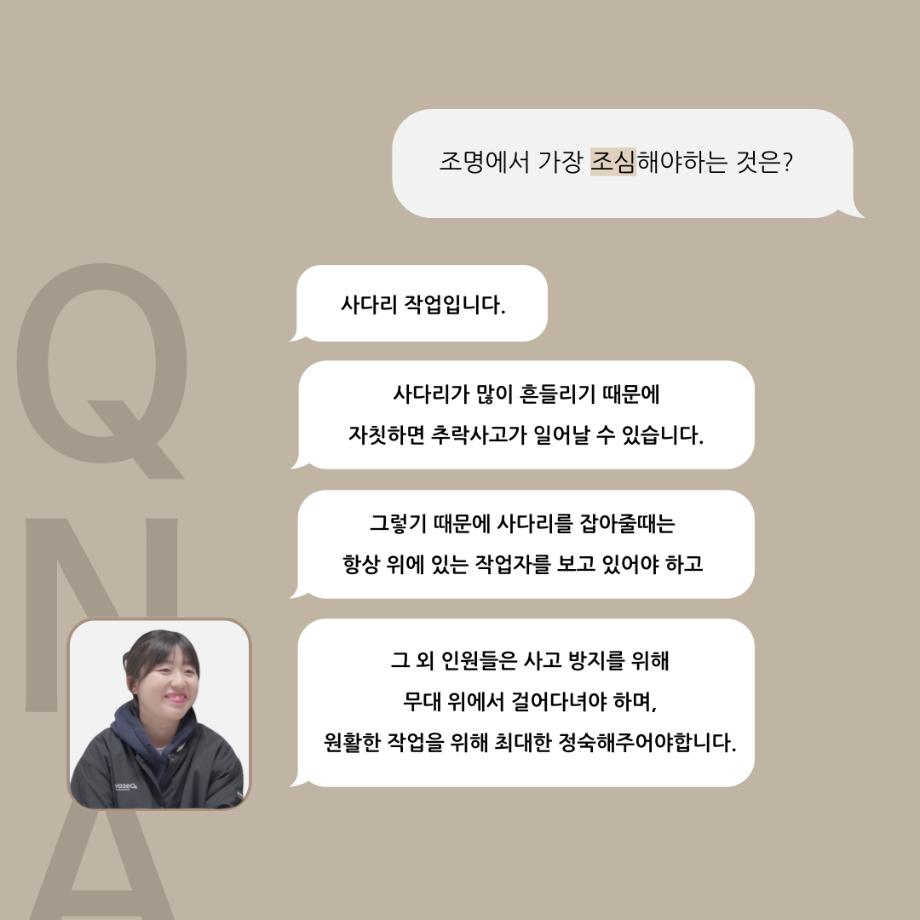 본문 시작 홈으로 커뮤니티 학과소개 입학정보 교수소개 학과과정 커뮤니티 공연예매 안내 홈페이지가이드 포토갤러리 공지사항 포토갤러리 작품DB 동아리 학사일정 학생회 포토갤러리 페이스북 트위터 프린트 '품'위있는 인'터뷰' - 24년도 조명장 <오승아> 연기예술학과 3272 2024-07-22 안녕하십니까. 24년도 학회 ‘품‘ 입니다. 학회 ‘품’의 다섯 번째 인터뷰로 세명대학교 연기예술학과 24학년도 조명장인 오승아 학우와 인터뷰 하는 시간을 가졌습니다. 조명장을 맡게된 소감과 조명은 어떤 의미가 있는지, 조명에서 조심히 해야하는 것은 무엇이며 극장장과 학과생에게 전하고 싶은 말 등을 질문하는 시간을 가졌습니다. 앞으로 있을 인터뷰 컨텐츠인 ‘품터뷰’ 많은 사랑 부탁드립니다. 목록 이전오픈소스 SW 라이선스 교육 안내 다음 장애청년 채용 취업 정보 안내 7월 2차 담당부서 : 연기예술학과 담당자 : - 연락처 : 043-649-1733 최종수정일 : 2024-10-26 만족도조사 만족도 조사 이 페이지에서 제공하는 정보에 대하여 만족하시나요? 매우만족 만족 보통 불만족 매우불만족