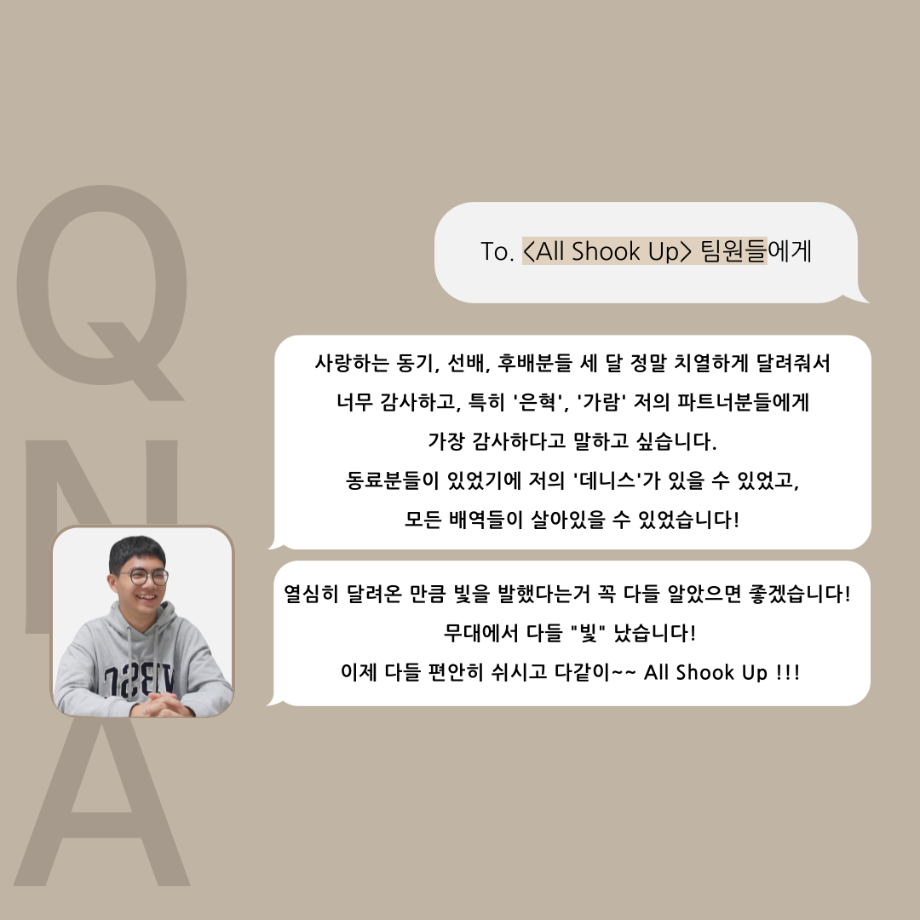 본문 시작 홈으로 커뮤니티 학과소개 입학정보 교수소개 학과과정 커뮤니티 공연예매 안내 홈페이지가이드 포토갤러리 공지사항 포토갤러리 작품DB 동아리 학사일정 학생회 포토갤러리 페이스북 트위터 프린트 ‘품’ 위 있는 인 ‘터뷰’ - 뮤지컬 제작실습 <올슉업> 데니스정지운 카드 뉴스 연기예술학과 2850 2025-01-17 . 목록 이전‘품’ 위 있는 인 ‘터뷰’ - 뮤지컬 제작실습 <올슉업> 나탈리 안수연 카드 뉴스 다음 2024학년도 공연영상학과 (현 연기예술학과) 학과수여식 담당부서 : 연기예술학과 담당자 : - 연락처 : 043-649-1733 최종수정일 : 2024-10-26 만족도조사 만족도 조사 이 페이지에서 제공하는 정보에 대하여 만족하시나요? 매우만족 만족 보통 불만족 매우불만족