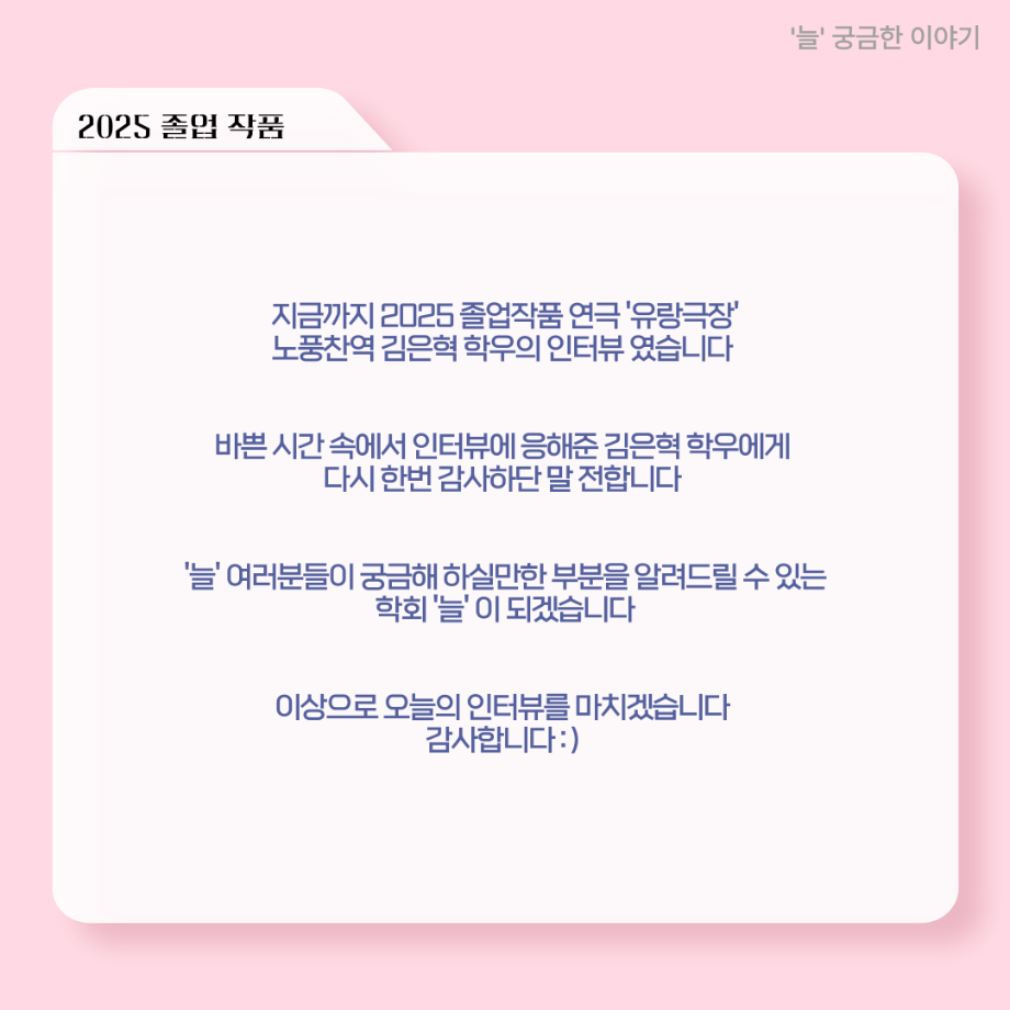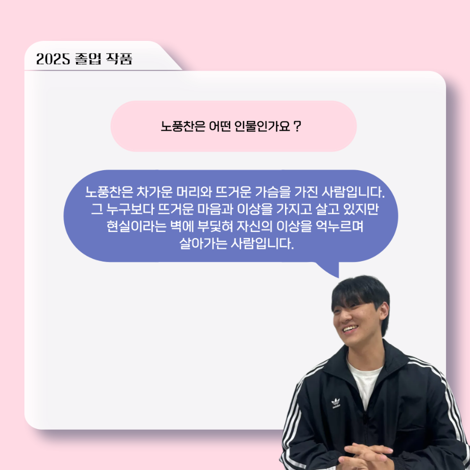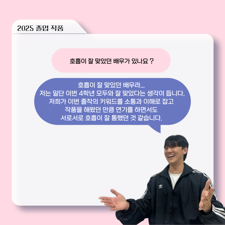본문 시작 홈으로 커뮤니티 학과소개 입학정보 교수소개 학과과정 커뮤니티 공연예매 안내 홈페이지가이드 포토갤러리 공지사항 포토갤러리 작품DB 동아리 학사일정 학생회 포토갤러리 페이스북 트위터 프린트 ‘늘‘ 궁금한 이야기 - 2025 졸업작품 ‘유랑극장’ 노풍찬役 < 김은혁 > 연기예술학과 1134 2025-12-05 . 목록 이전‘늘‘ 궁금한 이야기 - 하계 프로젝트 ‘사랑의 온도’팀 주지환役 < 신승현 > 담당부서 : 연기예술학과 담당자 : - 연락처 : 043-649-1733 최종수정일 : 2024-10-26 만족도조사 만족도 조사 이 페이지에서 제공하는 정보에 대하여 만족하시나요? 매우만족 만족 보통 불만족 매우불만족