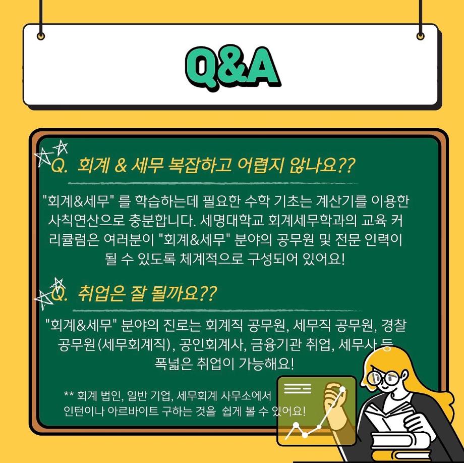 본문 시작 홈으로 학과소식 학과소개 취업정보 교육과정 학과소식 홈페이지가이드 포토갤러리 공지사항 포토갤러리 학과이야기 학과행사 포토갤러리 페이스북 트위터 프린트 회계세무학과 정시모집 안내 회계세무학과 2231 2022-01-03 세명대학교 회계세무학과 정시모집 안내입니다. 목록 이전세명대학교 장학금 안내 다음 2019년도 청룡체전 담당부서 : 회계세무학과 담당자 : - 연락처 : 043-649-1244 최종수정일 : 2024-10-26 만족도조사 만족도 조사 이 페이지에서 제공하는 정보에 대하여 만족하시나요? 매우만족 만족 보통 불만족 매우불만족