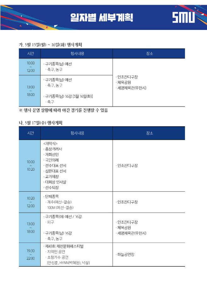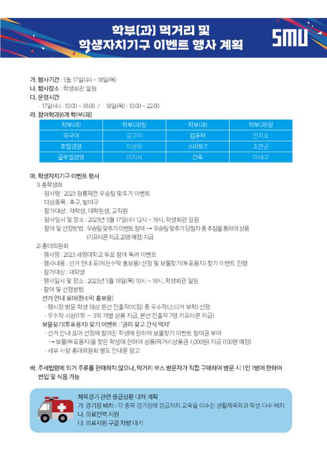 본문 시작 홈으로 학과소식 학과소개 취업정보 교육과정 학과소식 홈페이지가이드 포토갤러리 공지사항 포토갤러리 학과이야기 학과행사 포토갤러리 페이스북 트위터 프린트 세명대학교 제30회 청룡체전 회계세무학과 9172 2023-05-15 세명대학교 제30회 청룡축전!🎉 2023.05.17.(수)~19.(금) 체육대회와 더불어 먹거리 행사 및 다양한 이벤트도 함께 진행된다고 합니다😍 많은 관심과 참여 부탁드립니다!!! 목록 이전세명대학교 <등록금 책임환불제> 다음 2023학년도 세명대학교 하계방학 체류형 프로그램 개방 안내 담당부서 : 회계세무학과 담당자 : - 연락처 : 043-649-1244 최종수정일 : 2024-10-26 만족도조사 만족도 조사 이 페이지에서 제공하는 정보에 대하여 만족하시나요? 매우만족 만족 보통 불만족 매우불만족