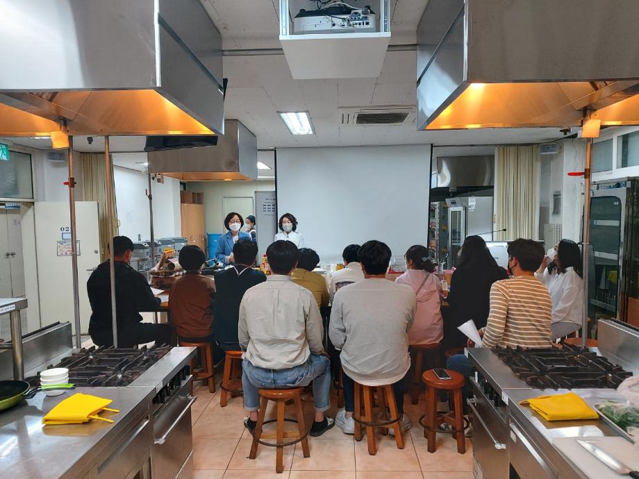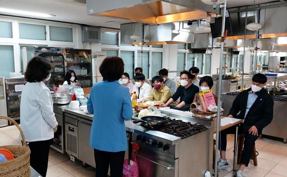 바이오식품영양학부(학부장 박수진)는 4월 27일 관내 교사들을 대상으로 조리교육 특강을 실시하였다. 이 날 특강에는 제천고등학교 교사 14명이 참석하였으며 바이오식품영양학부 조리교육 현황과 실습실 소개 후 ‘건강 닭갈비’ , ‘수삼냉채’ 조리교육을 진행하였다. 바이오식품영양학부는 2021년 충북국제교육원 북부분원과 지역 고교 교육력 제고를 위한 업무협약을 체결하였고, 매 학기 고교 공동교육과정을 운영하고 있다. 이번 특강으로 교사들이 대학의 조리교육 현장을 체험하게 되어 향후 학교, 지역, 대학의 협력에 의한 창의 융합적 교육에 도움이 될 것으로 보인다.