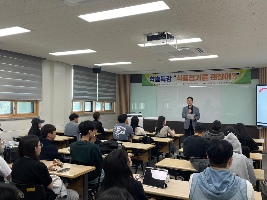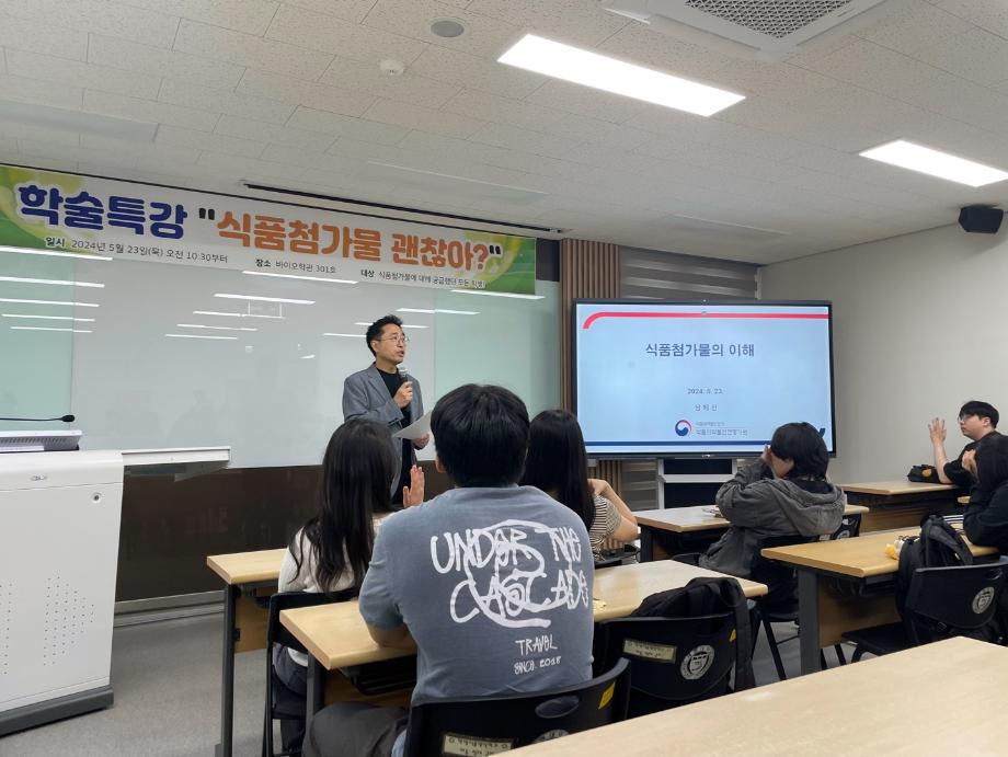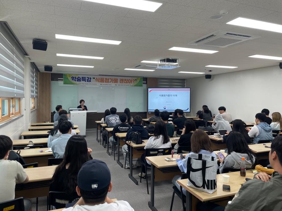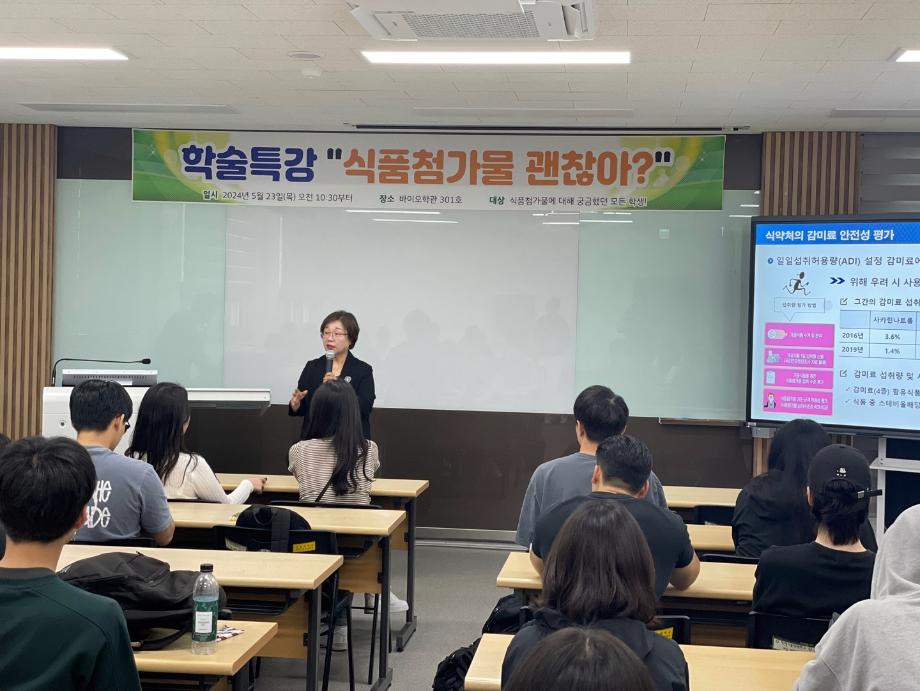 본문 시작 홈으로 커뮤니티 학부소개 진로·취업 교육과정 커뮤니티 대학원 입학상담 홈페이지가이드 갤러리 공지사항 갤러리 학생회 동문회 전공자료실 전공동아리 Youtube Instagram 갤러리 페이스북 트위터 프린트 2024학년도 1학기 학술특강(강사: 식품의약품안전평가원 남혜선 연구관님) 바이오식품영양학부 2603 2024-05-28 2024학년도 1학기 학술특강(식품첨가물학)을 진행하였습니다. 1. 일시: 5월 23일(목) 오전 10시 30분 2. 장소: 바이오학관 301호 식품의약품안전평가원 남혜선 연구관님을 강사로 모신 본 특강에는 총 49명(교원: 3명, 학생: 46명)이 참석하였고, 특강을 통해 최신화 된 식품첨가물 기준 및 현황과 미래 산업 방향 등을 알아볼 수 있었으며 질의응답 시간을 통하여 평소 가졌던 실제적인 궁금증들을 해결할 수 있었습니다. 목록 이전[수상안내]한국식품영양학회 춘계학술대회 우수포스터상 수상 다음 비교과특강 'Alot를 활용한 디지털바이오헬스케어' 담당부서 : 바이오식품영양학부 담당자 : - 연락처 : 043-649-1430 최종수정일 : 2024-10-26 만족도조사 만족도 조사 이 페이지에서 제공하는 정보에 대하여 만족하시나요? 매우만족 만족 보통 불만족 매우불만족