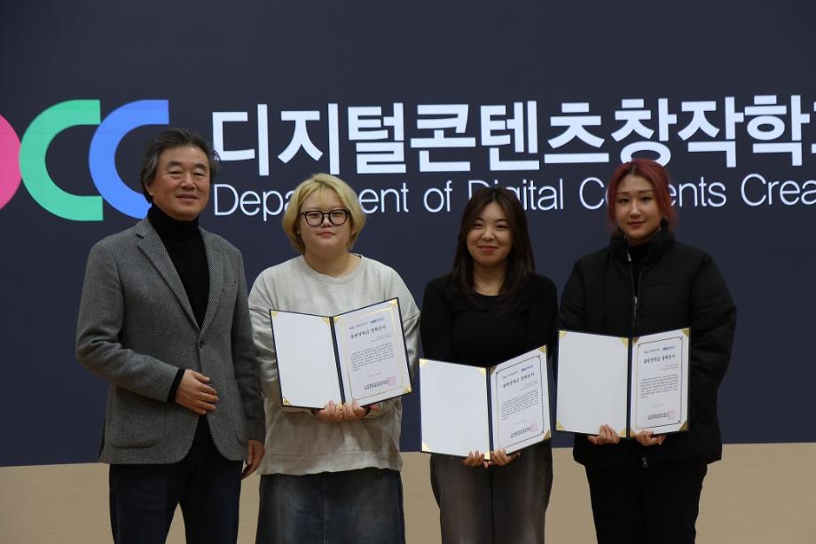 세명대학교(총장대행 권동현) 디지털콘텐츠창작학과 김기태 교수와 이 학과 졸업생이면서 겸임교수로 출강 중인 ㈜인포 박재원 대표가 10년째 장학금을 기탁하여 재학생들에게 ‘출판장학금’을 지급했다. 세명대 디지털콘텐츠창작학과는 지난 12월 3일, 교내 학술관에서 출판장학금 수여식을 갖고 3학년 윤예진 학생 등 모두 8명에게 400만 원의 장학금을 지급했다.