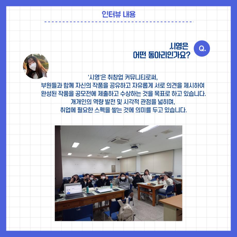 본문 시작 홈으로 학과자랑 학과소개 학과과정 시영소식 입학/취업 AI 학과자랑 SNS소통 홈페이지가이드 공모전 동아리 학과자랑 갤러리 공모전 동아리 졸업전시회 DesingN_us 외 DesingN_us 외 DesingN_us 외 페이스북 트위터 프린트 시각영상디자인학과 동아리 소개_시영 시각영상디자인학과 2178 2023-05-15 목록 이전2022년도 상반기 공모전 우수 수상작 다음 시각영상디자인학과 동아리 소개_미려 담당부서 : 시각영상디자인학과 담당자 : - 연락처 : 043-649-1726 최종수정일 : 2024-10-26 만족도조사 만족도 조사 이 페이지에서 제공하는 정보에 대하여 만족하시나요? 매우만족 만족 보통 불만족 매우불만족