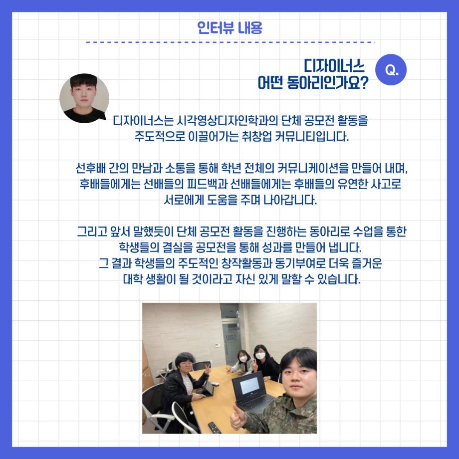 본문 시작 홈으로 학과자랑 학과소개 학과과정 시영소식 입학/취업 AI 학과자랑 SNS소통 홈페이지가이드 공모전 동아리 학과자랑 갤러리 공모전 동아리 졸업전시회 DesingN_us 외 DesingN_us 외 DesingN_us 외 페이스북 트위터 프린트 시각영상디자인학과 동아리 소개_디자이너스 시각영상디자인학과 2724 2023-05-15 목록 이전시각영상디자인학과 동아리 소개_스터디자인 다음 시영 동아리 활동 사진 담당부서 : 시각영상디자인학과 담당자 : - 연락처 : 043-649-1726 최종수정일 : 2024-10-26 만족도조사 만족도 조사 이 페이지에서 제공하는 정보에 대하여 만족하시나요? 매우만족 만족 보통 불만족 매우불만족