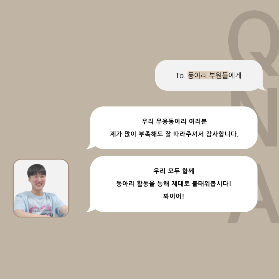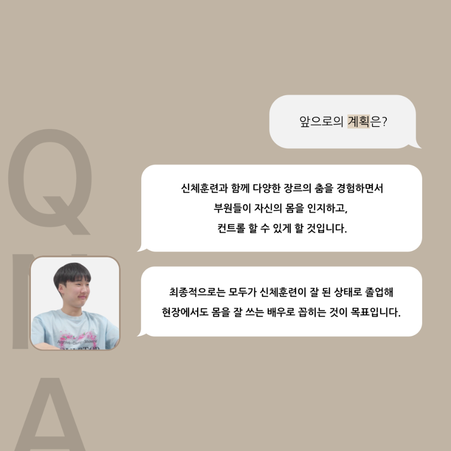본문 시작 홈으로 커뮤니티 학과소개 입학정보 교수소개 학과과정 커뮤니티 공연예매 안내 홈페이지가이드 동아리 공지사항 포토갤러리 작품DB 동아리 학사일정 학생회 무용 동아리 무용 동아리 뮤지컬 동아리 극장 스탭 동아리 배우 훈련 동아리 무용 동아리 페이스북 트위터 프린트 '품'위있는 인'터뷰' - 24년도 무용동아리장 <윤샘> 연기예술학과 3482 2024-07-29 안녕하십니까. 24년도 학회 ‘품‘ 입니다. 학회 ‘품’의 일곱 번째 인터뷰로 세명대학교 연기예술학과 24학년도 무용동아리장인 윤샘 학우와 인터뷰 하는 시간을 가졌습니다. 무용 동아리장이 된 계기와 동아리에서는 어떤 활동을 하고있는지, 앞으로의 계획은 무엇으며 동아리 부원들에게 전하고 싶은 말 등을 질문하는 시간을 가졌습니다. 앞으로 있을 인터뷰 컨텐츠인 ‘품터뷰’ 많은 사랑 부탁드립니다. 목록 이전2024년도 1학기 무용동아리 - 화란 활동! 다음 2025년도 1학기 무용동아리 화란 만족도조사 만족도 조사 이 페이지에서 제공하는 정보에 대하여 만족하시나요? 매우만족 만족 보통 불만족 매우불만족