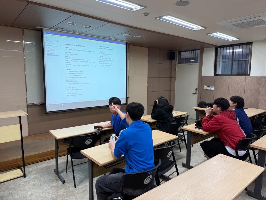 본문 시작 홈으로 커뮤니티 커뮤니티 학과소개 교육 홈페이지가이드 학과동아리 공지사항 학생회활동 학과동아리 취업정보 Idea Bank Idea Bank SOW 빵실빵실 쉐이커스 Idea Bank 페이스북 트위터 프린트 2025년 1학기 동아리 활동 (7) 호텔경영학과 584 2025-07-14 2025년 1학기 동아리 활동 (7) 목록 이전2025년 1학기 동아리 활동 (6) 다음 2025년 2학기 동아리 활동 (1) 만족도조사 만족도 조사 이 페이지에서 제공하는 정보에 대하여 만족하시나요? 매우만족 만족 보통 불만족 매우불만족