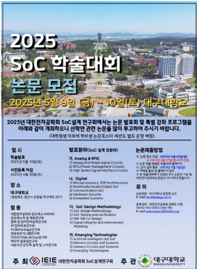 본문 시작 홈으로 학부활동 학부소개 학부활동 교육과정 커뮤니티 학부생활 입학안내 홈페이지가이드 전공 동아리 학부행사 학생회 활동 전공 동아리 학부갤러리 ICES Lab (Inteligent Computing Embedded System) DI Lab ICES Lab (Inteligent Computing Embedded System) ICES Lab (Inteligent Computing Embedded System) 페이스북 트위터 프린트 2025 SoC 학술대회 논문 발표 참가 컴퓨터학부 333 2025-06-20 2025 SoC 학술대회 논문 발표에 참가하게 된 이민준 학생입니다. 고생하셨습니다! 목록 다음 2025 SoC 학술대회 우수상 수상 만족도조사 만족도 조사 이 페이지에서 제공하는 정보에 대하여 만족하시나요? 매우만족 만족 보통 불만족 매우불만족
