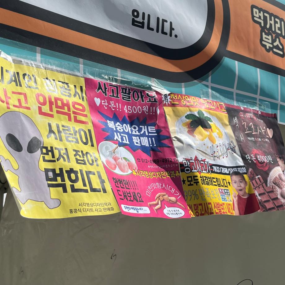 본문 시작 홈으로 시영소식 학과소개 학과과정 시영소식 입학/취업 AI 학과자랑 SNS소통 홈페이지가이드 학과행사 공지사항 학과행사 공모전 학생 인터뷰 학과행사 페이스북 트위터 프린트 2024년 청룡 축제 - 시각영상디자인학과 먹거리부스 시각영상디자인학과 1561 2024-10-01 이번 2024년 청룡축제에서 시각영상디자인학과 4학년 15명이 모여 판매한 먹거리부스는 홍콩식 과일 디저트인 <사고>입니다! 저희는 망고, 복숭아요거트,초코 이렇게 세가지 음료를 판매하였습니다. 망고, 복숭아요거트 사고는 4500원, 초코사고는 4000원에 판매하였습니다. 망고와 복숭아를 직접 생과일 손질하였으며 23일 24일 이틀합쳐서 총 300잔이 판매되었습니다! 목록 이전2024 콘텐츠스쿨 AI & 그래픽 스튜디오(그래픽) 상생하는 공공디자인 프로젝트 다음 학과 학술 특강 - 2024. 10. 8 -"현실을 준비하는 디자인 커리어 여정:실전 경험과 프로 팁" 담당부서 : 시각영상디자인학과 담당자 : - 연락처 : 043-649-1726 최종수정일 : 2024-10-26 만족도조사 만족도 조사 이 페이지에서 제공하는 정보에 대하여 만족하시나요? 매우만족 만족 보통 불만족 매우불만족