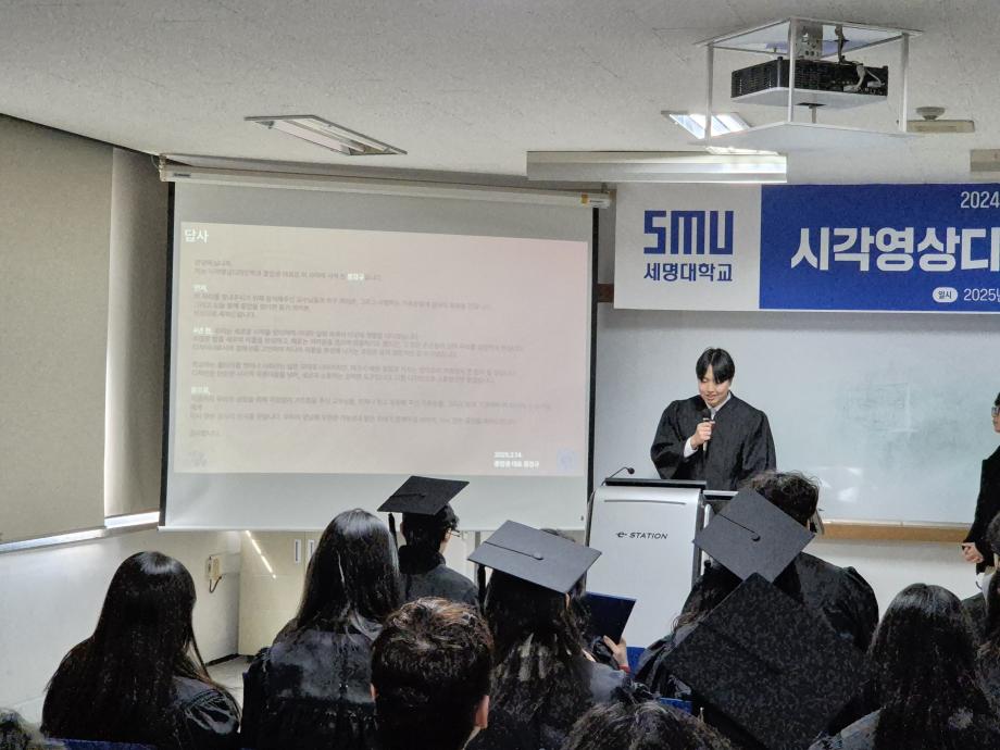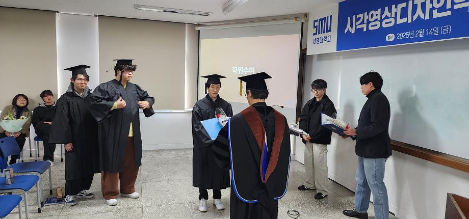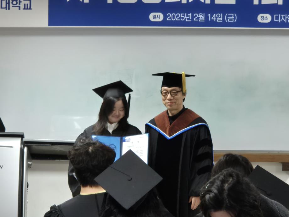 본문 시작 홈으로 시영소식 학과소개 학과과정 시영소식 입학/취업 AI 학과자랑 SNS소통 홈페이지가이드 학과행사 공지사항 학과행사 공모전 학생 인터뷰 학과행사 페이스북 트위터 프린트 2024학년도 세명대학교 학위수여식 시각영상디자인학과 1636 2025-02-15 2025. 2. 14(금) 시각영상디자인학과 학위수여식이 진행되었습니다 4학년 졸업생들과 학부모님 지인들이 많이 참여하고 선배후배들의 송사와 답사 그리고 인문대(7개 학과가 속한) 전체 수석 '박수빈'학생과 학과 수석 '송윤진'학생의 수상으로 더욱 빛나는 행사가 되었습니다. 모두모두 졸업 축하합니다. 목록 이전AI 콘텐츠연구소 전시 안내 다음 2025년 2월 24일 시각영상디자인학과 꿈설계학기 행사 담당부서 : 시각영상디자인학과 담당자 : - 연락처 : 043-649-1726 최종수정일 : 2024-10-26 만족도조사 만족도 조사 이 페이지에서 제공하는 정보에 대하여 만족하시나요? 매우만족 만족 보통 불만족 매우불만족