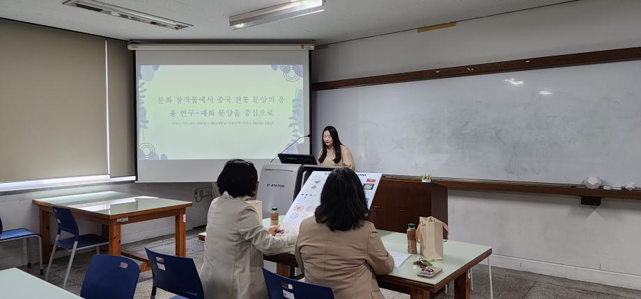 본문 시작 홈으로 시영소식 학과소개 학과과정 시영소식 입학/취업 AI 학과자랑 SNS소통 홈페이지가이드 학과행사 공지사항 학과행사 공모전 학생 인터뷰 학과행사 페이스북 트위터 프린트 대학원 석사학위 청구 작품발표 및 연구보고서 심사 시각영상디자인학과 1080 2025-06-01 2025년 5월 28일 오후 1시 반, 디자인관 112호에서 세명대 대학원 디자인학과 이*학생(시각디자인전공)의 석사학위 작품발표 및 연구보고서 심사를 진행하였습니다 "문화 창작품에서 중국 전통 문양의 응용에 관한 연구 -중국전통문양 매화 중심으로" 본 학생은 향후 박사학위도 부산대 건국대 경북대에 지원하였습니다 목록 이전스승의 날 축하와 감사의 선물 전달 다음 특강-'진로를 위한 자기 개발의 방법과 준비' 담당부서 : 시각영상디자인학과 담당자 : - 연락처 : 043-649-1726 최종수정일 : 2024-10-26 만족도조사 만족도 조사 이 페이지에서 제공하는 정보에 대하여 만족하시나요? 매우만족 만족 보통 불만족 매우불만족
