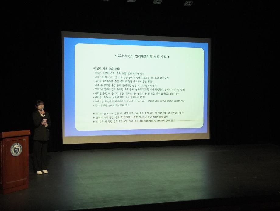 본문 시작 홈으로 학과소개 학과소개 입학정보 교수소개 학과과정 커뮤니티 공연예매 안내 홈페이지가이드 학과행사 학과개요 학과장인사말 학과연혁 세명대학교 민송아트홀 학과행사 진로 학과행사 페이스북 트위터 프린트 2024년 세명대학교 연기예술학과 개강총회 연기예술학과 2403 2024-03-20 안녕하십니까.제 16대 연기예술학과 학생회 품 입니다. 연기예술학과 1학기 개강총회가 지난 3월 14일에 진행됐습니다. 교수님의 말씀과 예산안, 복학생 소개 등을 진행했습니다. - 2024년 1학기 개강총회에 참석해주신 모든 분들께 감사의 인사를 드리며, 앞으로 더 활발하고 소통이 많은 연기예술학과가 되도록 노력하겠습니다. 목록 이전2024년 세명대학교 꿈 설계 학기 다음 2024 세명대학교 연기예술학과 1학기 맞이 대청소 영상 숏츠 만족도조사 만족도 조사 이 페이지에서 제공하는 정보에 대하여 만족하시나요? 매우만족 만족 보통 불만족 매우불만족