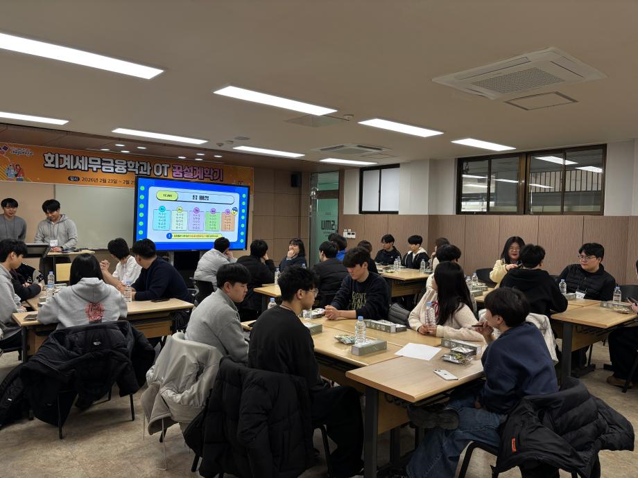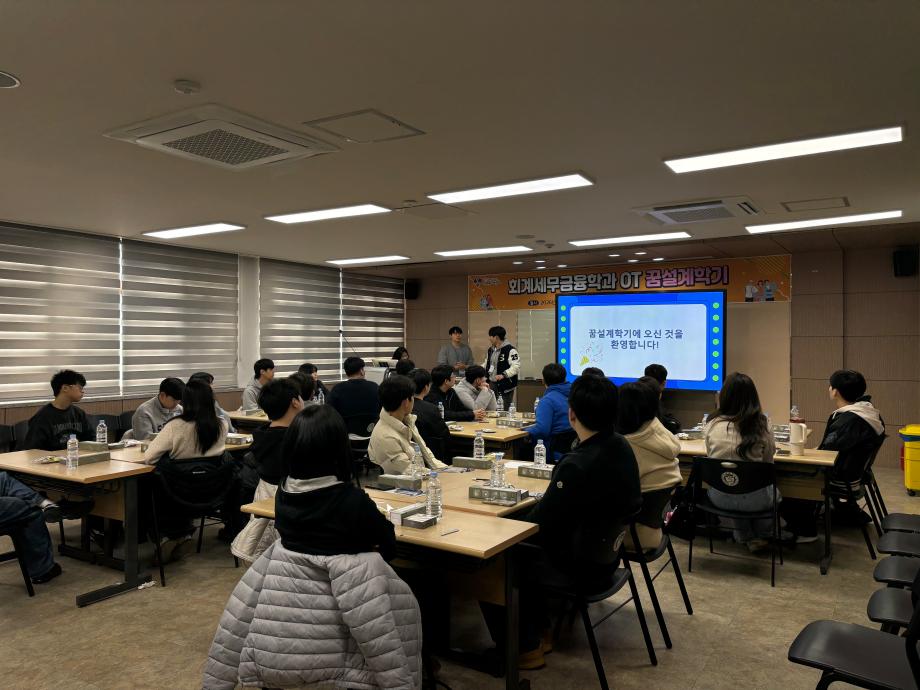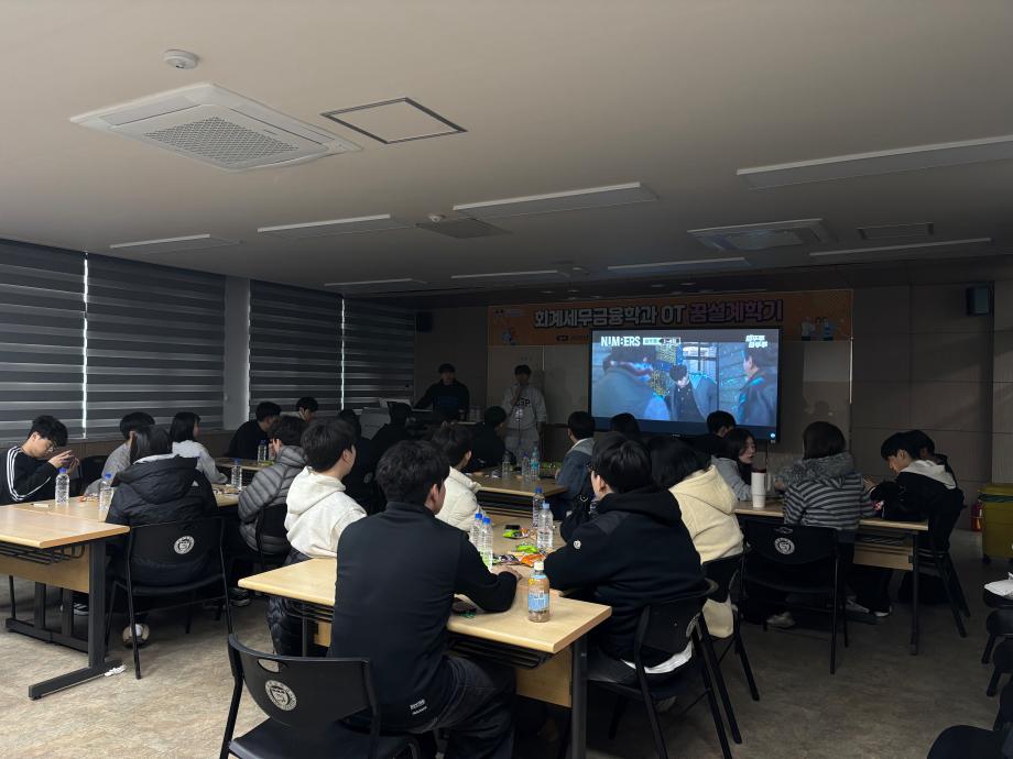본문 시작 홈으로 학과소식 학과소개 취업정보 교육과정 학과소식 홈페이지가이드 학과행사 공지사항 포토갤러리 학과이야기 학과행사 학과행사 페이스북 트위터 프린트 2026 회계세무금융학과 꿈설계학기 회계세무금융학과 90 2026-02-26 2026.02.23(월)~2026.02.25(수) 회계세무금융학과 꿈설계학기를 진행하였습니다! 회계세무금융학과 학생분들 입학을 축하드립니다❤️ 목록 이전2025학년도 2학기 기말고사 간식사업 다음 회계세무금융학과 개강파티 만족도조사 만족도 조사 이 페이지에서 제공하는 정보에 대하여 만족하시나요? 매우만족 만족 보통 불만족 매우불만족