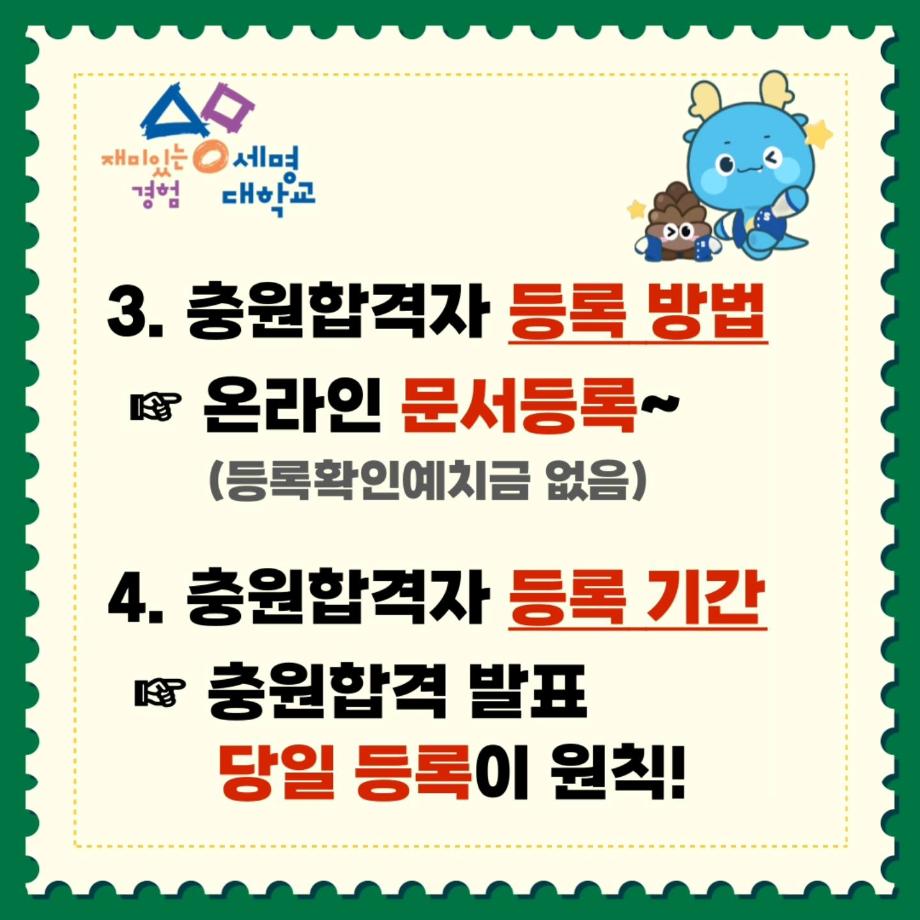 12월 19일부터 12월26일까지 충원합격자 발표 및 등록이 시작됩니다.