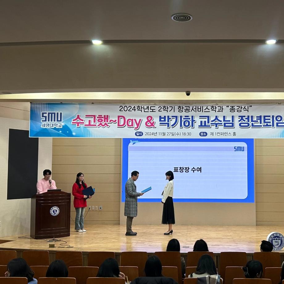 이번행사에서는 그동안 저희 학과를 함께 빛내주신 박기하교수님의 정년퇴임식도 함께 하였습니다.