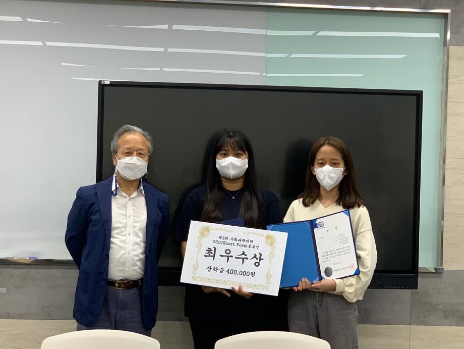 본문 시작 홈으로 매력적인 학과소개 매력적인 학과소개 흥미로운 교육과정 특별CC프로그램 We can 취업 따뜻한 커뮤니티 홈페이지가이드 지금 우리 광홍은 학과개요 학과연혁 교수소개 Wilco로 보는광고홍보학과 지금 우리 광홍은 지금 우리 광홍은 페이스북 트위터 프린트 [ 2022 사회과학대학 홍보 UCC / Short Form 공모전 시상식🎖] 광고홍보학과 2331 2022-06-13 6월 8일, 2022년 제 3회 사회과학대학 UCC / Short Form 공모전에서 광고홍보학과 팀 “김이유 주세유~”와 팀 “ADPR”이 각각 최우수상과 우수상을 수상하는 시상식이 열렸습니다! 두 팀의 수상을 진심으로 축하하며, 앞으로도 발전하고 참신한 아이디어를 보여주는 광고홍보학과를 기대해주시기 바랍니다😊 목록 이전[ 2022 사회과학대학 학부(과) 홍보 UCC / Short Form 공모전 수상🏆] 다음 [광고홍보학과 오윤지 학생회장 모니터링 임명장 수여식]