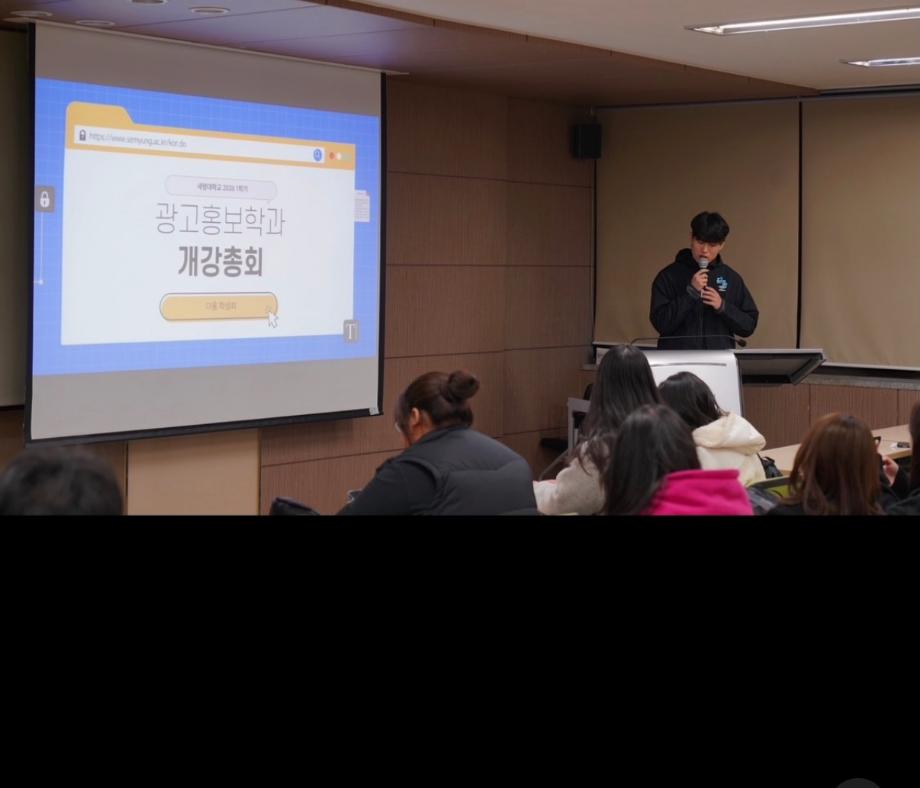 본문 시작 홈으로 매력적인 학과소개 매력적인 학과소개 흥미로운 교육과정 특별CC프로그램 We can 취업 따뜻한 커뮤니티 홈페이지가이드 지금 우리 광홍은 학과개요 학과연혁 교수소개 Wilco로 보는광고홍보학과 지금 우리 광홍은 지금 우리 광홍은 페이스북 트위터 프린트 2026년도 1학기 개강총회 광고홍보학과 80 2026-03-27 새로운 식구들이 입학했어요. 26학번 신입생 여러분 환영합니다. 신입생과 재학생 여러분 2026년 1학기도 건강하고 행복하게 지내봐요 : ) 따뜻하고 강한 학과! 광고홍보학과! 목록 이전새해 복 많이 받으세요 : )