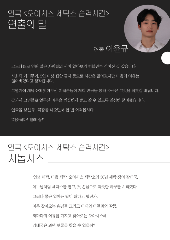 본문 시작 홈으로 학과과정 학과소개 입학정보 교수소개 학과과정 커뮤니티 공연예매 안내 홈페이지가이드 비교과프로그램 교육과정 전공교육 체계도 비교과프로그램 MOU 체결 하계, 동계 프로젝트 하계, 동계 프로젝트 연극놀이 지도사 양성 교육 현장실습 프로그램 액팅플러스 하계, 동계 프로젝트 페이스북 트위터 프린트 2021학년도 동계 프로젝트 ‘오아시스 세탁소 습격사건’ 연기예술학과 2514 2021-04-29 목록 이전2021학년도 동계 프로젝트 ‘자살에 관하여’ 다음 2021학년도 하계 프로젝트 ' 쇼팔로비치 유랑극단' 만족도조사 만족도 조사 이 페이지에서 제공하는 정보에 대하여 만족하시나요? 매우만족 만족 보통 불만족 매우불만족