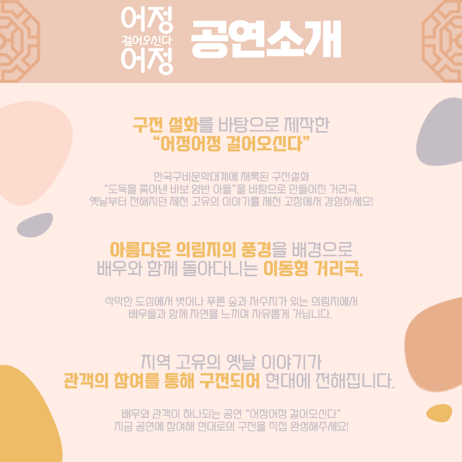 본문 시작 홈으로 학과과정 학과소개 입학정보 교수소개 학과과정 커뮤니티 공연예매 안내 홈페이지가이드 비교과프로그램 교육과정 전공교육 체계도 비교과프로그램 MOU 체결 하계, 동계 프로젝트 하계, 동계 프로젝트 연극놀이 지도사 양성 교육 현장실습 프로그램 액팅플러스 하계, 동계 프로젝트 페이스북 트위터 프린트 2021 극단 포즈 창단 공연 '어정어정 걸어오신다' 연기예술학과 2606 2021-06-28 목록 다음 2021학년도 하계 프로젝트 '당신이 잃어버린 것' 다음 세명대학교 연기예술학과 영화 속 여자캐릭터 연기 젠더프리 만족도조사 만족도 조사 이 페이지에서 제공하는 정보에 대하여 만족하시나요? 매우만족 만족 보통 불만족 매우불만족