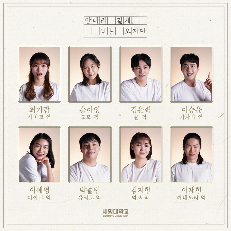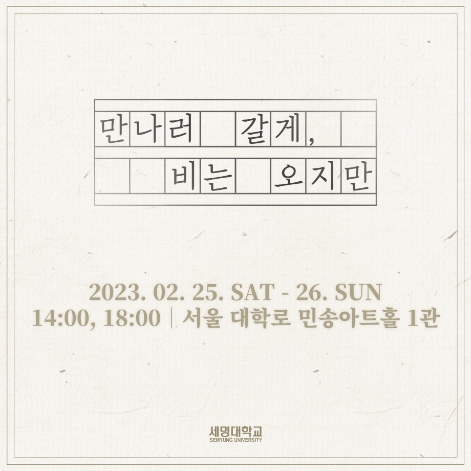 본문 시작 홈으로 학과과정 학과소개 입학정보 교수소개 학과과정 커뮤니티 공연예매 안내 홈페이지가이드 비교과프로그램 교육과정 전공교육 체계도 비교과프로그램 MOU 체결 하계, 동계 프로젝트 하계, 동계 프로젝트 연극놀이 지도사 양성 교육 현장실습 프로그램 액팅플러스 하계, 동계 프로젝트 페이스북 트위터 프린트 ☂ ‘동계 프로젝트’ <만나러 갈게, 비는 오지만> 캐스팅 보드☂ 연기예술학과 2556 2023-02-11 | 📸 | #만나러갈게,비는오지만 제 90회 세명대학교 연기예술학과 정기공연 ‘동계 프로젝트’ <만나러 갈게, 비는 오지만> 캐스팅 보드☂ - 𝟮𝟬𝟮𝟯. 𝟬𝟮. 𝟮𝟱. 𝗦𝗔𝗧 - 𝟮𝟬𝟮𝟯. 𝟬𝟮. 𝟮𝟲. 𝗦𝗨𝗡 서울 대학로 세명대학교 민송아트홀 1관 목록 이전🐑'동계 프로젝트' < 보이체크 > 프로필 스틸컷🐑 다음 ☂‘동계 프로젝트’ <만나러 갈게, 비는 오지만> QR 코드☂ 만족도조사 만족도 조사 이 페이지에서 제공하는 정보에 대하여 만족하시나요? 매우만족 만족 보통 불만족 매우불만족