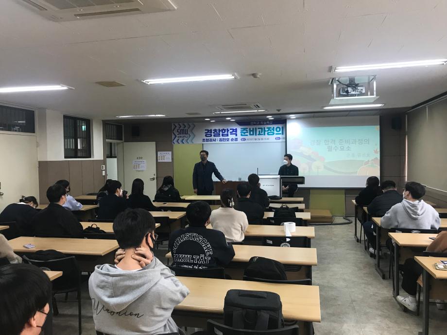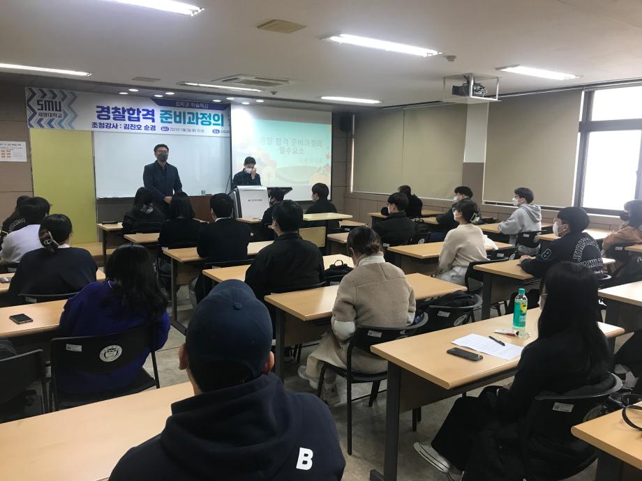본문 시작 홈으로 학과과정 학과안내 교수소개 학과과정 커뮤니티 홈페이지가이드 비교과프로그램 교육과정 전공교육 체계도 대학원 법학과 비교과프로그램 학사일정 공공법무 지원프로그램 공공법무 지원프로그램 기업법무 지원프로그램 공공법무 지원프로그램 페이스북 트위터 프린트 2021.11.02 경찰 공무원 특강 법학과 3268 2021-11-02 2021년 11월 2일 충주경찰서 사이버수사대 소속 김진호 선배님을 모시고 ' 경찰합격 준비과정의 필수요소' 이라는 주제로 특강을 진행하였습니다. 목록 다음 2021. 11. 03 변호사 특강 담당부서 : 법학과 담당자 : - 연락처 : 043-649-1764 최종수정일 : 2024-10-26 만족도조사 만족도 조사 이 페이지에서 제공하는 정보에 대하여 만족하시나요? 매우만족 만족 보통 불만족 매우불만족