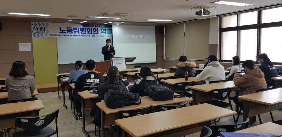 본문 시작 홈으로 학과과정 학과안내 교수소개 학과과정 커뮤니티 홈페이지가이드 비교과프로그램 교육과정 전공교육 체계도 대학원 법학과 비교과프로그램 학사일정 기업법무 지원프로그램 공공법무 지원프로그램 기업법무 지원프로그램 기업법무 지원프로그램 페이스북 트위터 프린트 2021. 12. 2. 노무사 특강 법학과 2969 2021-12-02 2021년 12월 2일 경북지방노동위원회 사무국장을 맡고 계시는 김성권 노무사님을 모시고 ' 노동위원회의 역할과 기능' 이라는 주제로 특강을 진행하였습니다. ※본 특강은 코로나19 방역 수칙을 준수하여 진행하였습니다.※ 목록 다음 2021 12. 3. 신변보호사 자격증(2차) 이전2021. 11. 26. 신변보호사 자격증(1차) 담당부서 : 법학과 담당자 : - 연락처 : 043-649-1764 최종수정일 : 2024-10-26 만족도조사 만족도 조사 이 페이지에서 제공하는 정보에 대하여 만족하시나요? 매우만족 만족 보통 불만족 매우불만족