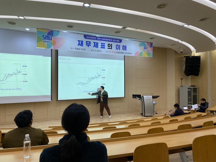 본문 시작 홈으로 교육과정 학과소개 취업정보 교육과정 학과소식 홈페이지가이드 비교과프로그램 교육과정 전공교육 체계도 비교과프로그램 전산회계 특강 전산회계 특강 전산세무 특강 회계 및 세무 공무원 특강 회계 및 세무 분야 진로 특강 전산회계 특강 페이스북 트위터 프린트 2025학년도 2학기 회계세무금융학과 전산회계 특강 회계세무금융학과 93 2026-02-03 2025학년도 2학기 회계사를 초청하여 재무재표에 대한 이해를 주제로 특강을 진행하였습니다. 목록 이전2025학년도 2학기 회계세무금융학과 전산회계 특강 만족도조사 만족도 조사 이 페이지에서 제공하는 정보에 대하여 만족하시나요? 매우만족 만족 보통 불만족 매우불만족