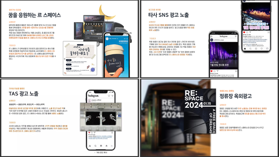 본문 시작 홈으로 흥미로운 교육과정 매력적인 학과소개 흥미로운 교육과정 특별CC프로그램 We can 취업 따뜻한 커뮤니티 홈페이지가이드 작품 갤러리 교육일정 교육과정 전공교육 체계도 졸업후진로 작품 갤러리 작품 갤러리 페이스북 트위터 프린트 [광고홍보캡스톤디자인]Le Space 브랜드 관리 방안 광고홍보학과 3087 2024-01-04 광고홍보캡스톤디자인 수업 결과물 산학협력 프로그램 : "Le Space 브랜드 관리 방안" 목록 이전[광고캠프]도시브랜드제고방안기획서 다음 [공공캠페인]서울시 공공디자인 공모전 수상작