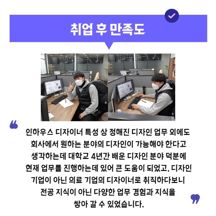 본문 시작 홈으로 입학/취업 학과소개 학과과정 시영소식 입학/취업 AI 학과자랑 SNS소통 홈페이지가이드 취업지금 입학여기 취업지금 전공소개 취업지금 페이스북 트위터 프린트 시디과 졸업 후 어디로 나아갈까? 6 시각영상디자인학과 2864 2022-02-07 목록 이전시디과 졸업 후 어디로 나아갈까? 5 다음 “시각디자인학과 2002학번 반혜승 졸업생” -미국의 세계적 자산운용 회사 Fidelity Investment의 Principal User Experience Desiger 취업! 담당부서 : 시각영상디자인학과 담당자 : - 연락처 : 043-649-1726 최종수정일 : 2024-10-26 만족도조사 만족도 조사 이 페이지에서 제공하는 정보에 대하여 만족하시나요? 매우만족 만족 보통 불만족 매우불만족