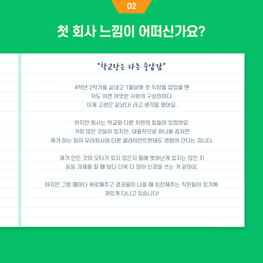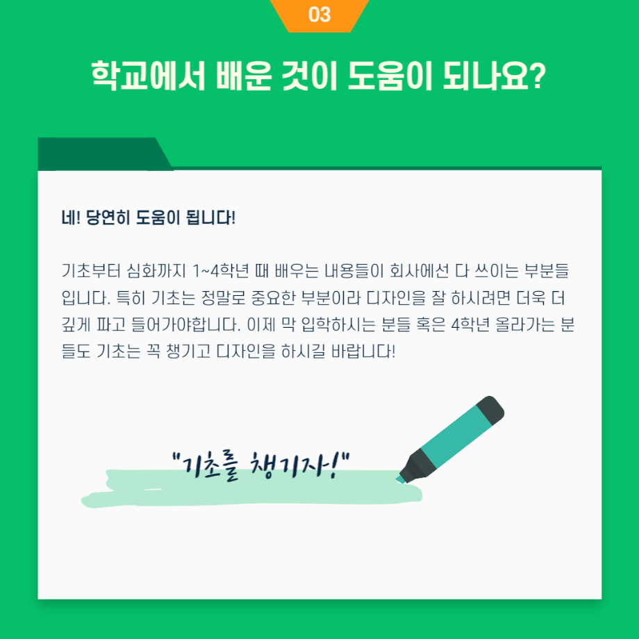 본문 시작 홈으로 입학/취업 학과소개 학과과정 시영소식 입학/취업 AI 학과자랑 SNS소통 홈페이지가이드 취업지금 입학여기 취업지금 전공소개 취업지금 페이스북 트위터 프린트 시각영상디자인학과 윤지훈 졸업생 - 가산디지털단지 디자인회사 취업! 시각영상디자인학과 2574 2023-03-29 목록 이전시각영상디자인학과 19학번 송나은 졸업생 - 서울 강남구 대치동 광고회사 취업! 다음 취업사례 중 대학원 진학 편 담당부서 : 시각영상디자인학과 담당자 : - 연락처 : 043-649-1726 최종수정일 : 2024-10-26 만족도조사 만족도 조사 이 페이지에서 제공하는 정보에 대하여 만족하시나요? 매우만족 만족 보통 불만족 매우불만족