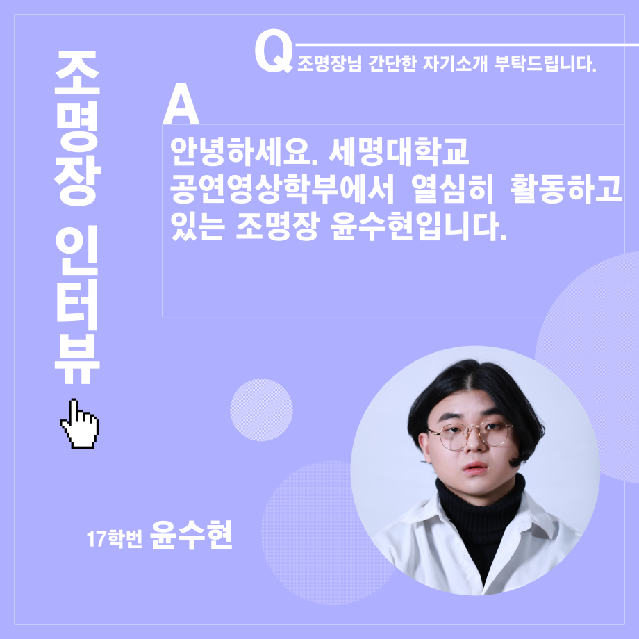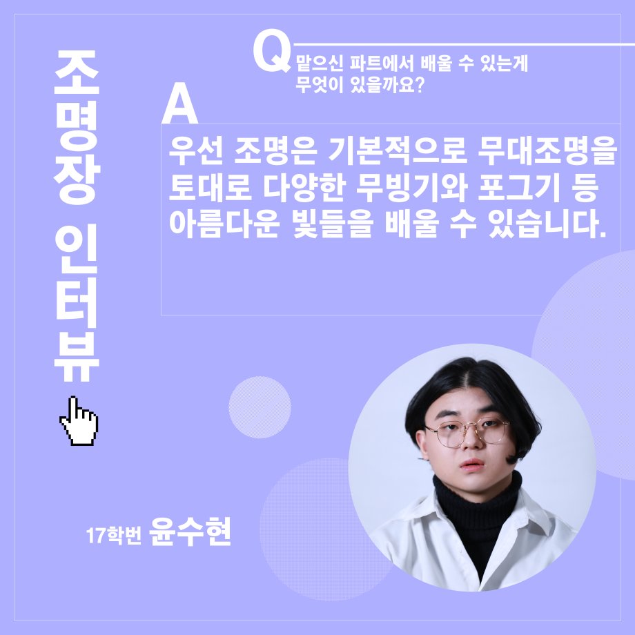 본문 시작 홈으로 학과소개 학과소개 입학정보 교수소개 학과과정 커뮤니티 공연예매 안내 홈페이지가이드 진로 학과개요 학과장인사말 학과연혁 세명대학교 민송아트홀 학과행사 진로 진로 페이스북 트위터 프린트 연기예술학과 조명장 인터뷰 연기예술학과 2585 2021-11-29 목록 이전연기예술학과 학회장 인터뷰 다음 연기예술학과 음향장 인터뷰 만족도조사 만족도 조사 이 페이지에서 제공하는 정보에 대하여 만족하시나요? 매우만족 만족 보통 불만족 매우불만족