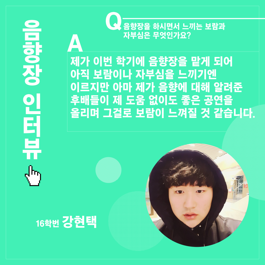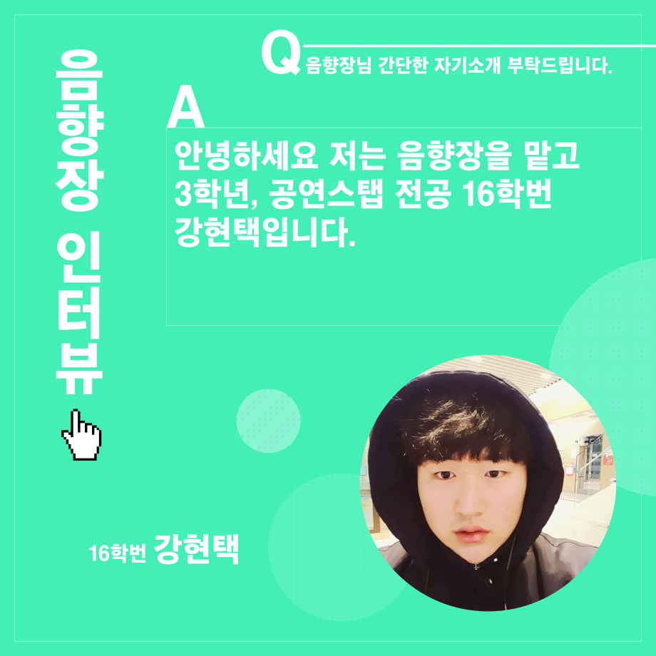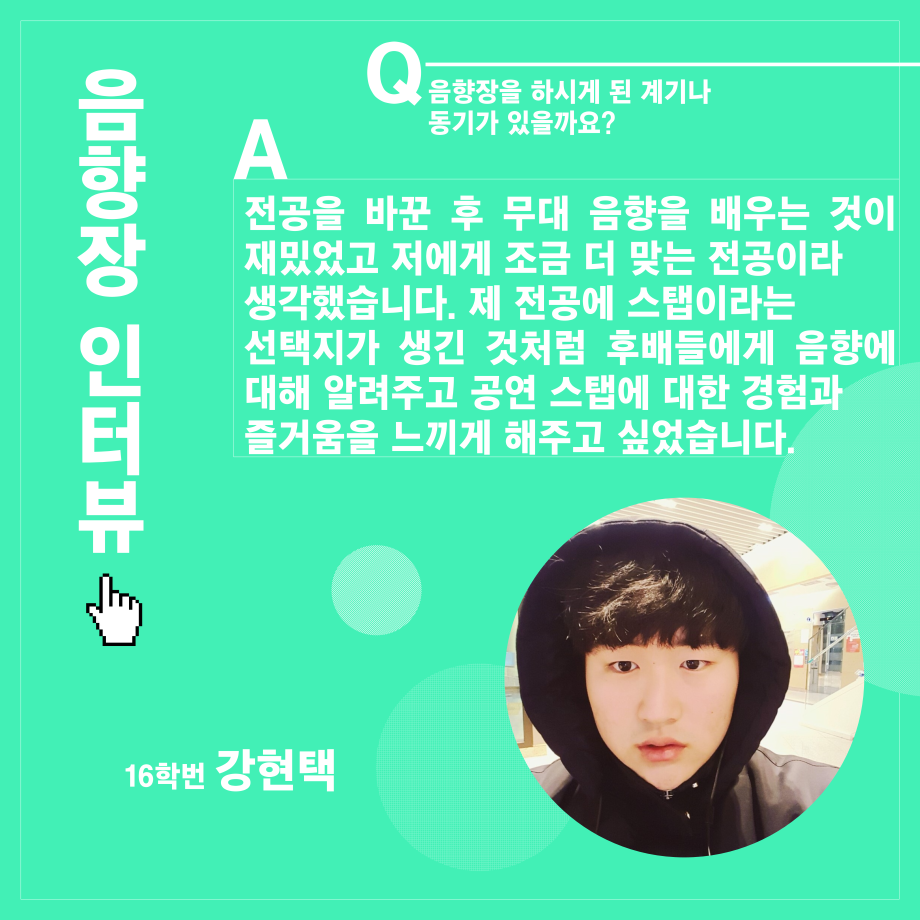 본문 시작 홈으로 학과소개 학과소개 입학정보 교수소개 학과과정 커뮤니티 공연예매 안내 홈페이지가이드 진로 학과개요 학과장인사말 학과연혁 세명대학교 민송아트홀 학과행사 진로 진로 페이스북 트위터 프린트 연기예술학과 음향장 인터뷰 연기예술학과 2569 2021-12-17 목록 이전연기예술학과 조명장 인터뷰 다음 연기예술학과 극장장 인터뷰 만족도조사 만족도 조사 이 페이지에서 제공하는 정보에 대하여 만족하시나요? 매우만족 만족 보통 불만족 매우불만족