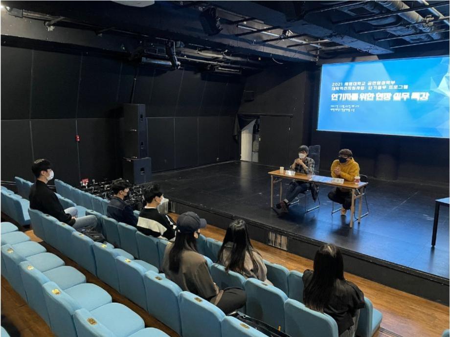 본문 시작 홈으로 학과소개 학과소개 입학정보 교수소개 학과과정 커뮤니티 공연예매 안내 홈페이지가이드 진로 학과개요 학과장인사말 학과연혁 세명대학교 민송아트홀 학과행사 진로 진로 페이스북 트위터 프린트 연기예술학과 3차 현장 실무 특강 연기예술학과 3885 2022-01-20 강사 : 김재록 전윤찬 배우 김재록 / PD 전윤찬 분들의 알차고 유익했던 특강은 많은 학생들이 현장 실무에 대하여 폭 넓게 배울 수 있는 시간이었습니다. 앞으로 더욱 성장할 수 있는 세명대학교 연기예술학과가 되겠습니다! 강연을 도와주신분들께 진심으로 감사의 인사를 올립니다. 목록 이전연기예술학과 2차 현장 실무 특강 다음 세명대학교 연기예술학과, '엔터테인먼트 디자인' 연계전공 운영 만족도조사 만족도 조사 이 페이지에서 제공하는 정보에 대하여 만족하시나요? 매우만족 만족 보통 불만족 매우불만족