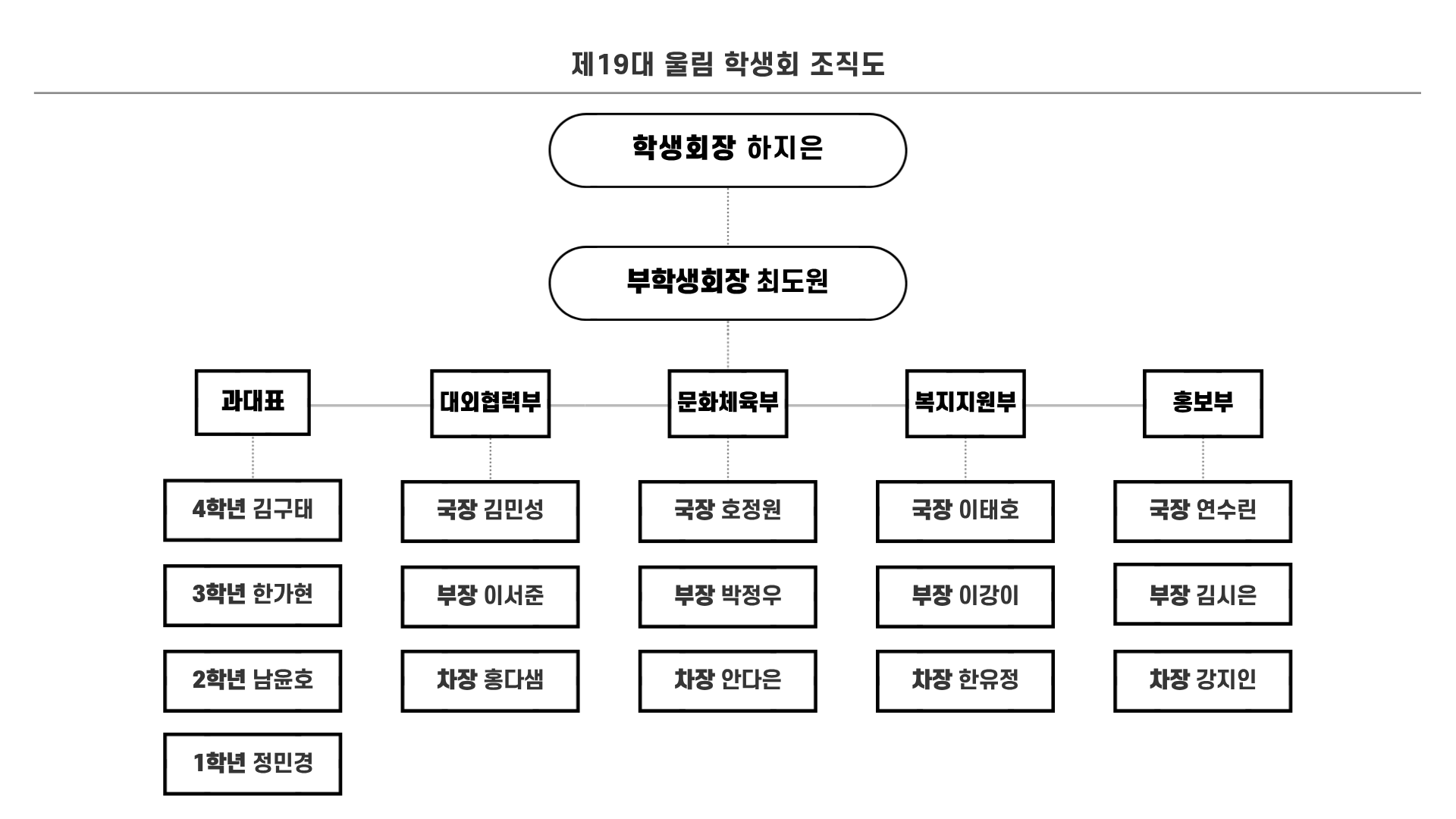 학생회에 대한 표로 학생회 임원들을 소개합니다.