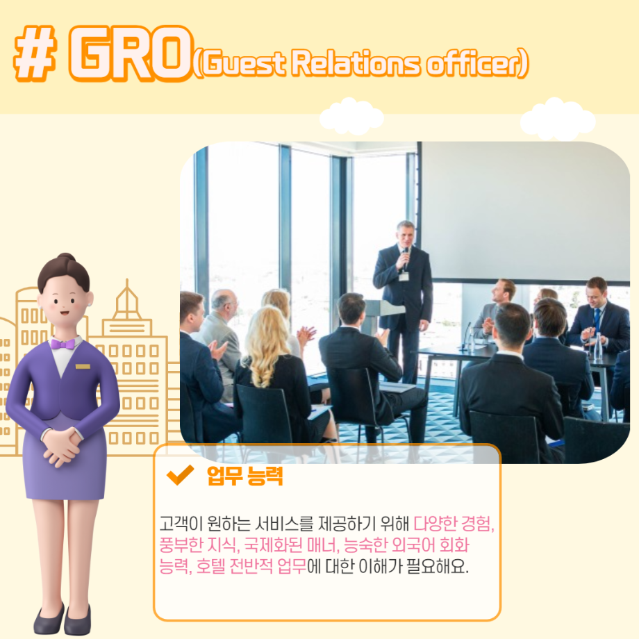 본문 시작 홈으로 머글 한줌단 학과안내 교수소개 교육과정 커뮤니티 머글 한줌단 홈페이지가이드 진로? 무물!! 어쩔 TV 저쩔 TV 진로? 무물!! TM Youtube TM Instagram TM Blog TM Facebook 진로? 무물!! 페이스북 트위터 프린트 GRO (Guest Relations Officer) 관광경영학과 1527 2022-02-04 목록 이전국제회의 기획자(Convention Organizer) 다음 여행안내원 (Tour Guide) 만족도조사 만족도 조사 이 페이지에서 제공하는 정보에 대하여 만족하시나요? 매우만족 만족 보통 불만족 매우불만족