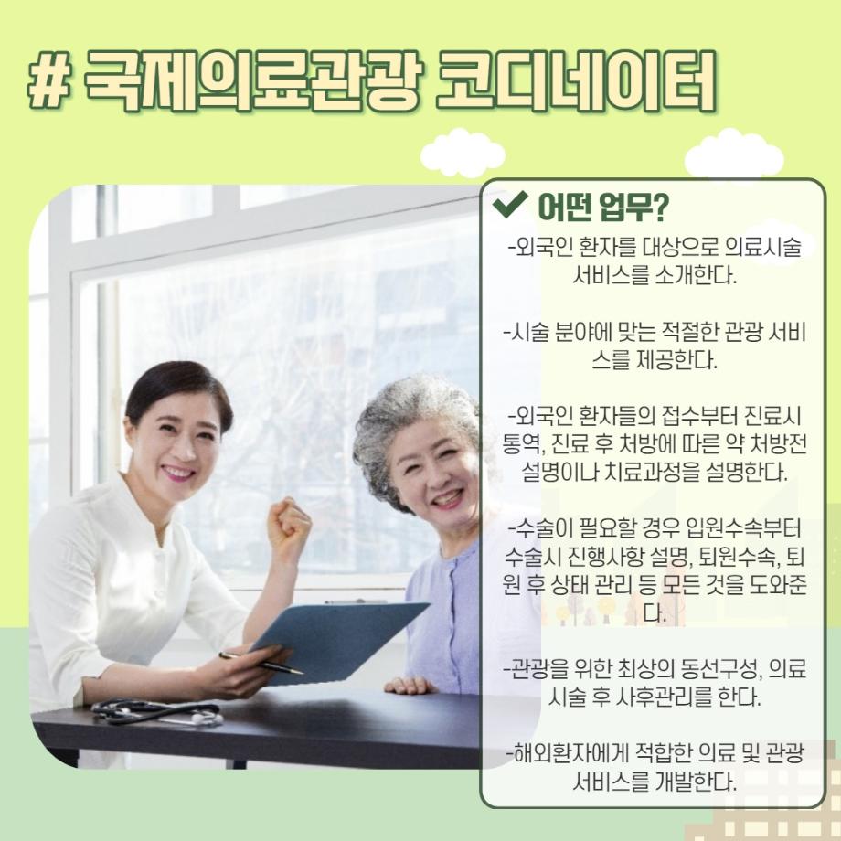 본문 시작 홈으로 머글 한줌단 학과안내 교수소개 교육과정 커뮤니티 머글 한줌단 홈페이지가이드 진로? 무물!! 어쩔 TV 저쩔 TV 진로? 무물!! TM Youtube TM Instagram TM Blog TM Facebook 진로? 무물!! 페이스북 트위터 프린트 국제 의료관광 코디네이터(International Medical Tour Cordinator) 관광경영학과 3288 2022-02-19 목록 이전푸드 코디네이터(Food Cordinator) 다음 산림치유 지도사 (Forest Healing Instructor) 만족도조사 만족도 조사 이 페이지에서 제공하는 정보에 대하여 만족하시나요? 매우만족 만족 보통 불만족 매우불만족