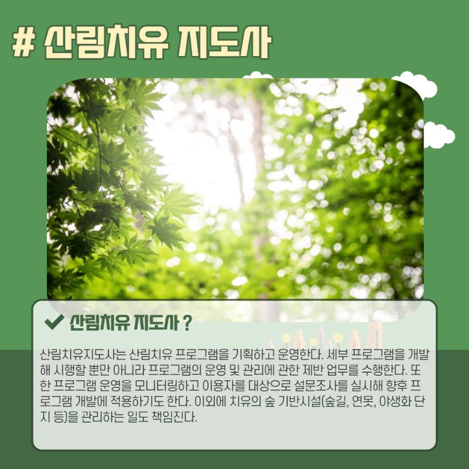 본문 시작 홈으로 머글 한줌단 학과안내 교수소개 교육과정 커뮤니티 머글 한줌단 홈페이지가이드 진로? 무물!! 어쩔 TV 저쩔 TV 진로? 무물!! TM Youtube TM Instagram TM Blog TM Facebook 진로? 무물!! 페이스북 트위터 프린트 산림치유 지도사 (Forest Healing Instructor) 관광경영학과 3257 2022-02-19 목록 이전국제 의료관광 코디네이터(International Medical Tour Cordinator) 다음 바리스타(Barista) 만족도조사 만족도 조사 이 페이지에서 제공하는 정보에 대하여 만족하시나요? 매우만족 만족 보통 불만족 매우불만족