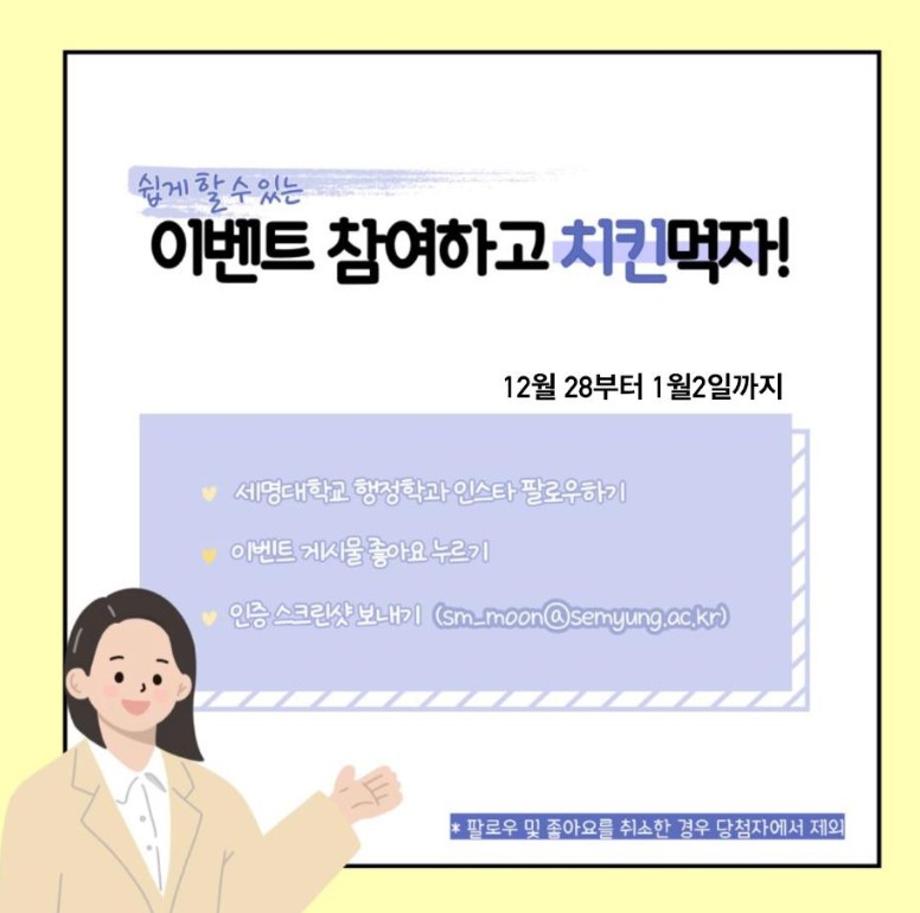 1) 세명대학교 행정학과 인스타 팔로우 후 게시물 좋아요 누르기