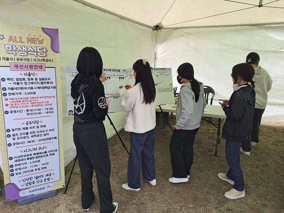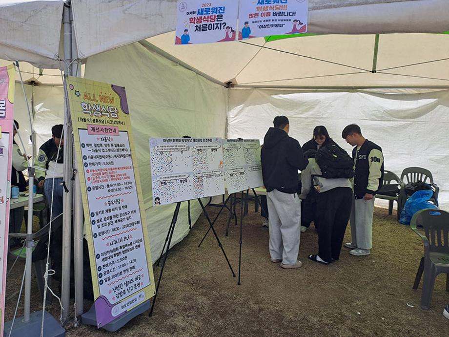 2023학년도 학생식당은 자율식(셀프배식) 변경, 공유식당(밀키트제품판매, 조리세척공간설치) 및 시그니처코너(철판요리류) 신규 운영, 신선한 샐러드 추가 제공, 김밥류 신규 운영 등 개선을 실시하였다.
