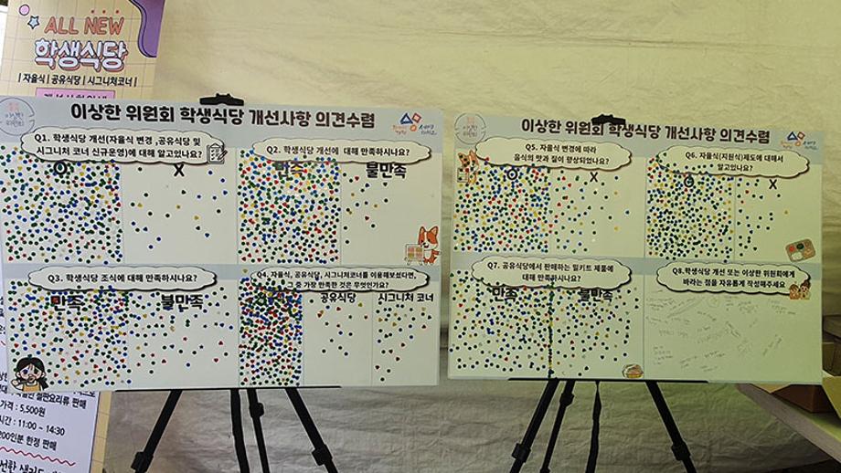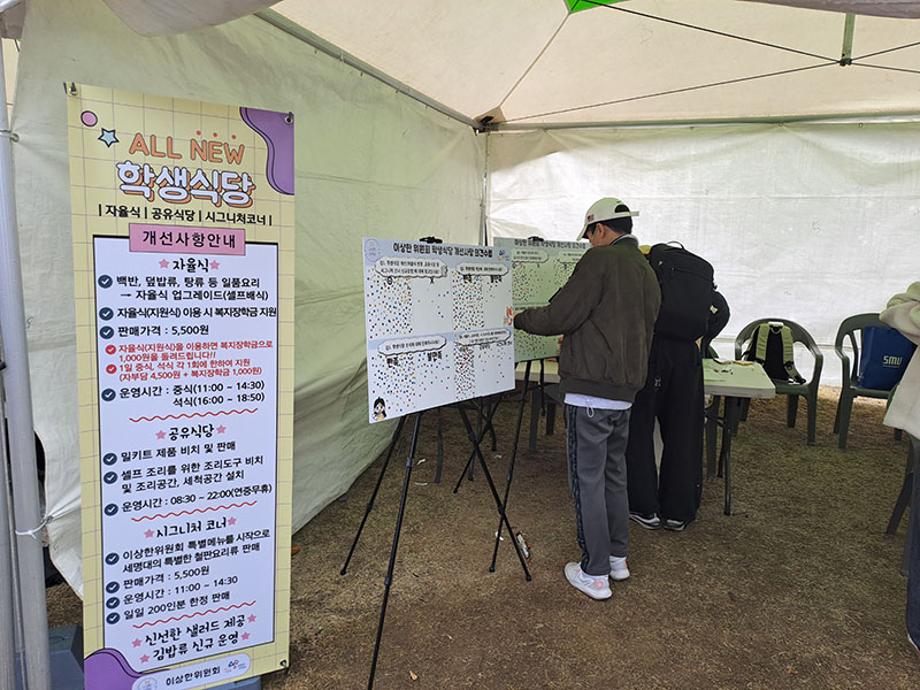 이에 이상한위원회는 학생들의 원활한 학생식당 이용을 위하여 개선된 부분에 대하여 홍보 및 안내하였으며, 또한 개선사항에 관하여 학생들에게 직접 의견수렴을 실시하였다.