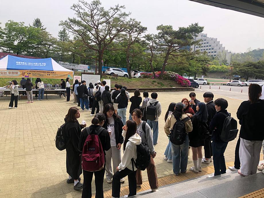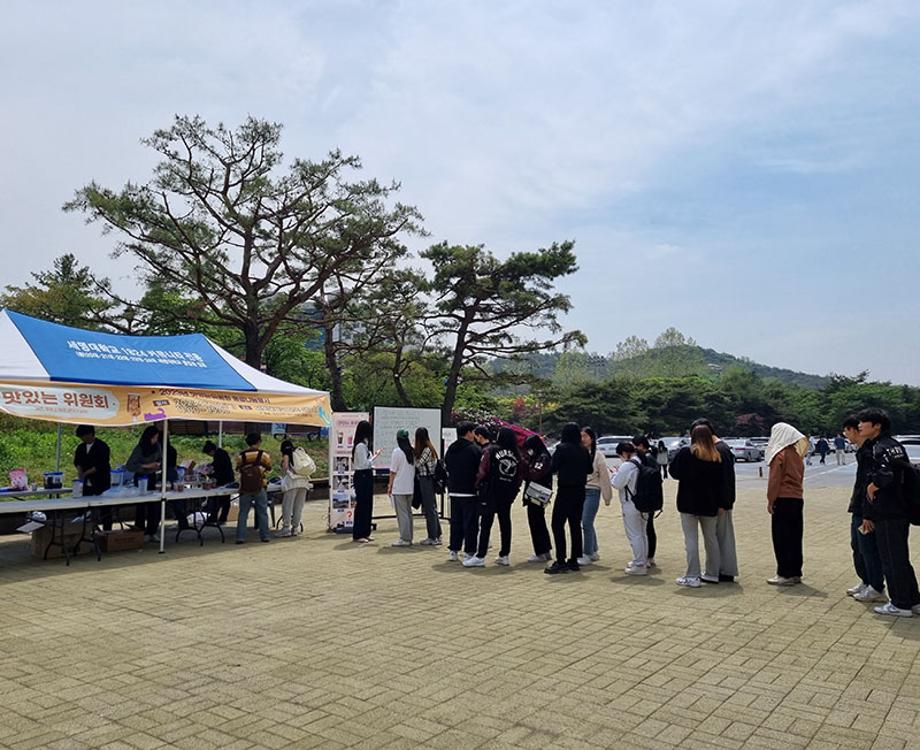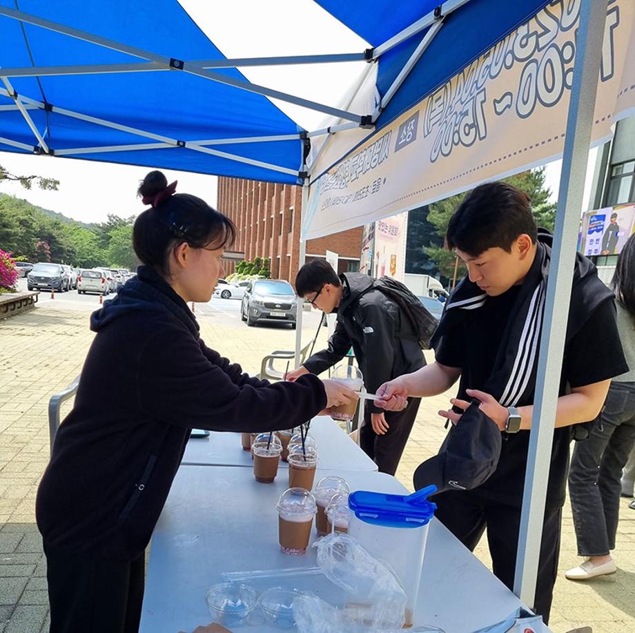 본문 시작 홈으로 포토갤러리 학생위원회 개요 학생위원회 소개 공지사항 활동결과 홈페이지가이드 포토갤러리 페이스북 트위터 프린트 [맛있는 위원회]제 1차 음료나눔행사 학생처 3009 2023-05-11 세명대학교 재미있는 경험을 위한 학생위원회 중 맛있는 위원회는 5월 4일(목) 11시부터 15시까지 학생회관 앞에서 음료나눔행사를 진행하였다. 교내 숨터(SUMTU) 및 숨은 장소를 알리기 위해 간단한 퀴즈와 홍보를 진행하였고, 퀴즈 정답자는 맛있는위원회에서 만든 음료(딸기라떼, 초코라떼, 아이스티)를 제공 받았다. 이를 통해, 학생이 음료를 가지고 교내 곳곳에 있는 장소에서 휴식, 공부, 여가 활동 등을 할 수 있는 기회를 제공하였다. 목록 이전[이상한위원회] 학생식당 개선사항 홍보 및 의견수렴(만족도조사) 실시 다음 [착한 위원회] '세명인의 계절을 들려줘' 설문조사 결과 담당부서 : 장학복지팀 담당자 : - 연락처 : 043-649-1142 최종수정일 : 2024-10-26 만족도조사 만족도 조사 이 페이지에서 제공하는 정보에 대하여 만족하시나요? 매우만족 만족 보통 불만족 매우불만족