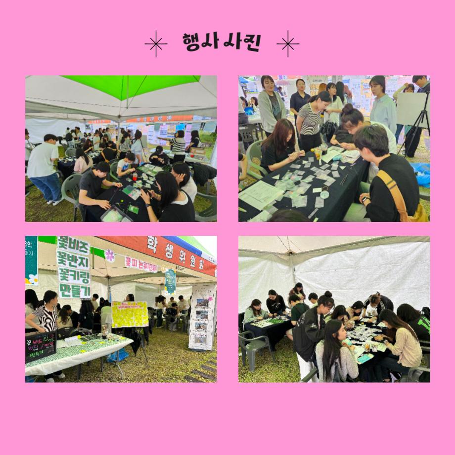 본문 시작 홈으로 포토갤러리 학생위원회 개요 학생위원회 소개 공지사항 활동결과 홈페이지가이드 포토갤러리 페이스북 트위터 프린트 [꽃피는 위원회] 비즈를 활용한 우정템(꽃반지,꽃키링) 만들기 학생처 2494 2023-09-22 꽃피는 위원회는 제 31회 청룡축전기간인 9/20일 뭐든지광장에서 비즈를 활용한 우정템 만들기 행사를 진행하였다. 총 100명의 구성원이 참여한 꽃피는 위원회 이번 활동은 위원회에 대한 응원메세지 작성 및 꽃반지 만들기, 꽃키링 만들기로 구성되어 진행되어 3시간 30분 동안의 활동시간 내내 참여자의 호응을 받으며 프로그램을 진행하였다. 목록 이전[생각하는 위원회] 생각게시판 결과 다음 [이상한 위원회] 학생식당 개선사항 SNS인증이벤트 담당부서 : 장학복지팀 담당자 : - 연락처 : 043-649-1142 최종수정일 : 2024-10-26 만족도조사 만족도 조사 이 페이지에서 제공하는 정보에 대하여 만족하시나요? 매우만족 만족 보통 불만족 매우불만족