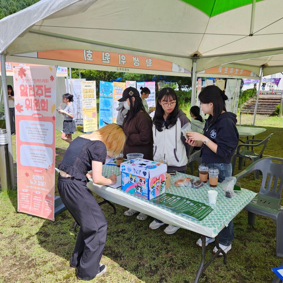 본문 시작 홈으로 포토갤러리 학생위원회 개요 학생위원회 소개 공지사항 활동결과 홈페이지가이드 포토갤러리 페이스북 트위터 프린트 [알려주는 위원회] 삼행시? 누가잘해 대학혁신지원단 1957 2023-10-05 알려주는 위원회는 2023년 9월 21일(목), 뭐든지광장에서 11시부터 14시 30분까지 <삼행시? 누가 잘해?> 홍보부스를 운영하였다. 선착순 키링 증정, 팔로우이벤트, ‘세명대’ 삼행시 이벤트를 운영하였으며, 총 95명의 학생이 참여하였다. 삼행시 이벤트 중, 가장 재치 있는 문구는 아래와 같다 세: 세시반에 명 : 명륜진사갈비갈래? 대 : 대박맛잇겟당’ 목록 이전[통하는 위원회] MZ투표부스운영 다음 [ 약속하는 위원회] 약속바구니 담당부서 : 장학복지팀 담당자 : - 연락처 : 043-649-1142 최종수정일 : 2024-10-26 만족도조사 만족도 조사 이 페이지에서 제공하는 정보에 대하여 만족하시나요? 매우만족 만족 보통 불만족 매우불만족