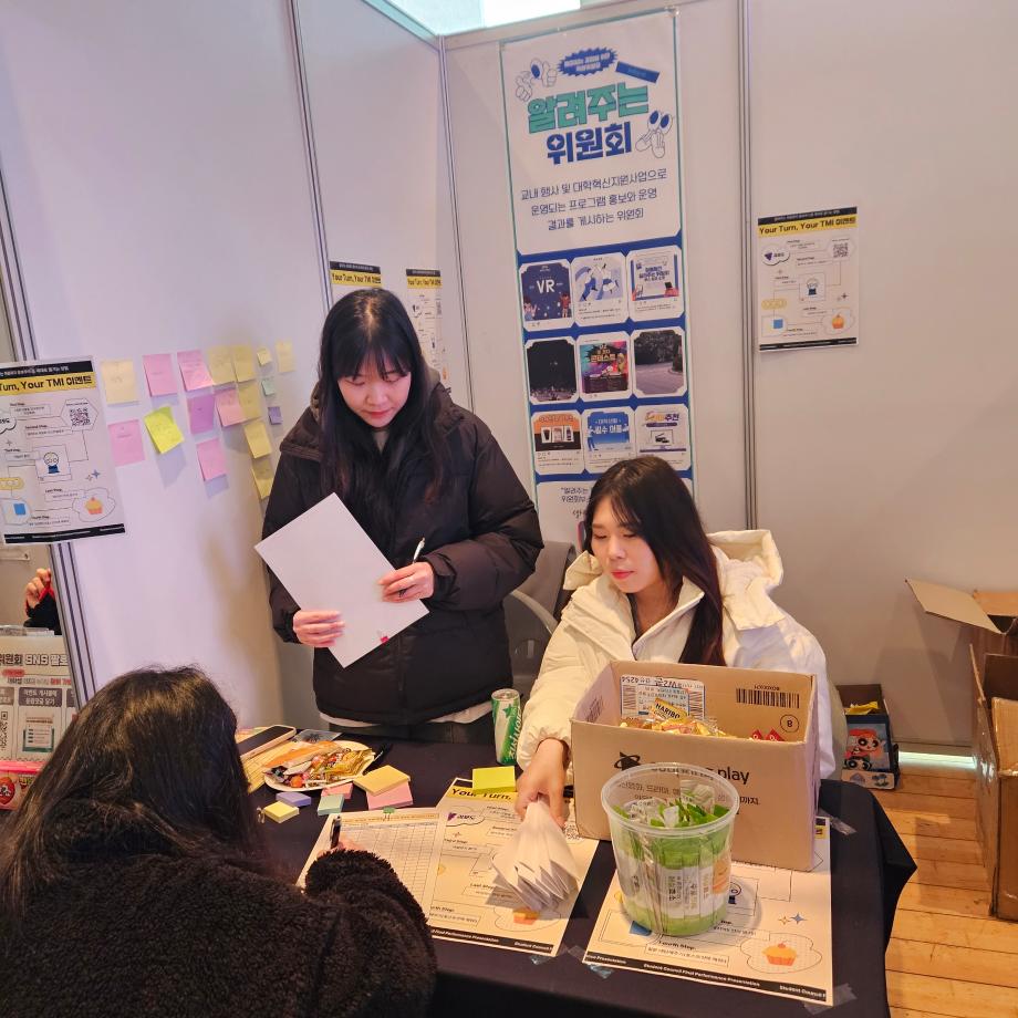 본문 시작 홈으로 포토갤러리 학생위원회 개요 학생위원회 소개 공지사항 활동결과 홈페이지가이드 포토갤러리 페이스북 트위터 프린트 [알려주는 위원회] 최종보고회 부스운영 대학혁신지원단 2965 2023-11-22 <알려주는 위원회 활동 결과 내용> [알려주는 위원회] 알려주는 위원회 Your Turn, Your TMI 역질문 이벤트 1. 행사일시: 2023년 11월 16일(목) 11:30~18:00 -제2회 학생위원회 최종보고회 기간 2. 행사장소: 학술관 1층 로비(알려주는 위원회 부스) 3. 행사내용 1) 알려주는 위원회 상담 및 가신청 2) 알려주는 위원회 팔로우 및 역질문 답글 달기 이벤트 3) 간식 나눔 4. 참여인원: 107명 목록 이전[통하는 위원회] 최종보고회 부스 이전[생각하는 위원회] 제 2회 멍때리기 대회 담당부서 : 장학복지팀 담당자 : - 연락처 : 043-649-1142 최종수정일 : 2024-10-26 만족도조사 만족도 조사 이 페이지에서 제공하는 정보에 대하여 만족하시나요? 매우만족 만족 보통 불만족 매우불만족