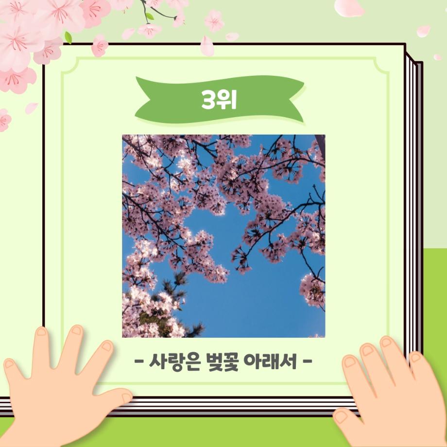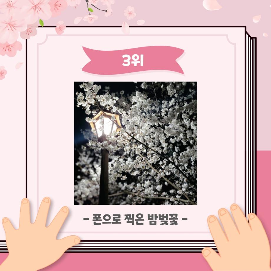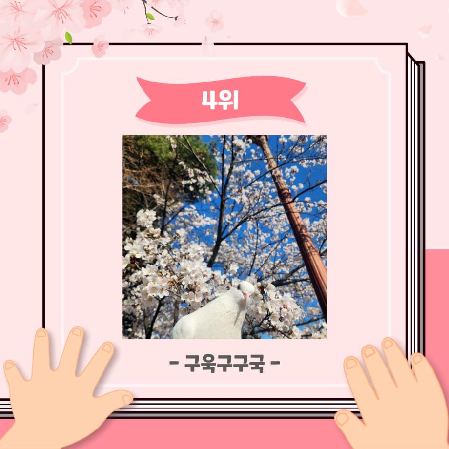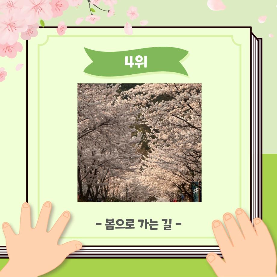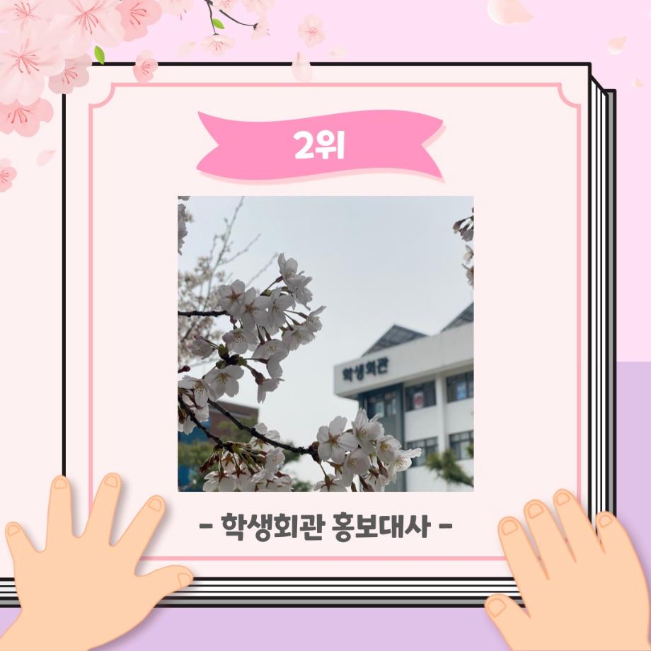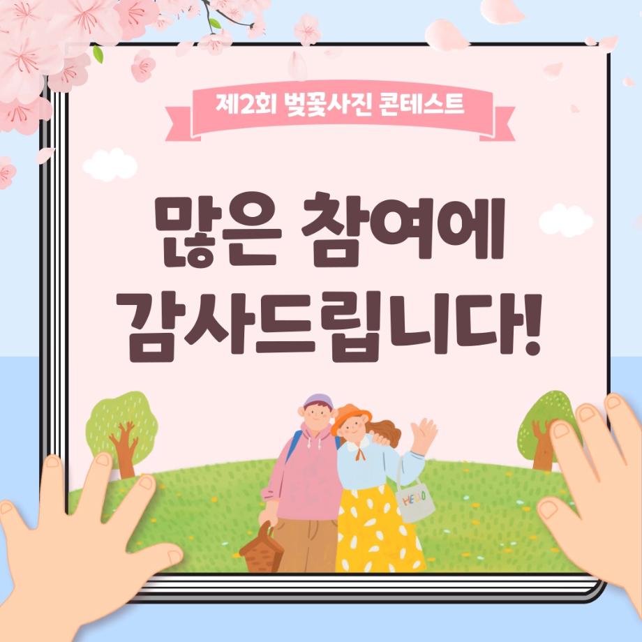 본문 시작 홈으로 포토갤러리 학생위원회 개요 학생위원회 소개 공지사항 활동결과 홈페이지가이드 포토갤러리 페이스북 트위터 프린트 [꽃피는 위원회] 벚꽃사진 콘테스트 결과 학생처 2123 2024-05-07 2024학년도 벚꽃사진 콘테스트 선정 결과 안내 1. 접수: 2024.04.02(화)~12(금) 2. 참가인원 : 99명 3. 선정 - 1차선정 : 17개 작품 선정(꽃피는 위원회 선정) - 2차(최종) 선정 : 10개 작품 선정(순위 결정) * 구성원 선정참여 :171명 참여 목록 이전[생각하는 위원회] 해먹존 해먹설치 및 환경 정리 다음 [꽃피는 위원회] 행운을 가져다주는 책갈피 만들기 담당부서 : 장학복지팀 담당자 : - 연락처 : 043-649-1142 최종수정일 : 2024-10-26 만족도조사 만족도 조사 이 페이지에서 제공하는 정보에 대하여 만족하시나요? 매우만족 만족 보통 불만족 매우불만족