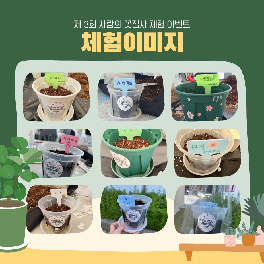 본문 시작 홈으로 포토갤러리 학생위원회 개요 학생위원회 소개 공지사항 활동결과 홈페이지가이드 포토갤러리 페이스북 트위터 프린트 [꽃피는 위원회] 제 3회 사랑의 꽃집사 체험이벤트 학생처 1682 2024-05-23 제 3회 사랑의 꽃집사 체험 이벤트 일시 : 2024.05.23(목) 12:00 ~ 15:00 장소 : 학생회관 앞 광장 참여인원 : 본교 구성원 114명 (꽝 15명, 채소씨앗 30명, 꽃씨앗 67명) 참여한 구성원분들의 식집사 체험 성공을 기원합니다. 목록 이전[맛있는 위원회] 맛그램 틀렸그램 다음 [생각하는 위원회] 대형 현수막 문구 공모전 '준비 시~작' 담당부서 : 장학복지팀 담당자 : - 연락처 : 043-649-1142 최종수정일 : 2024-10-26 만족도조사 만족도 조사 이 페이지에서 제공하는 정보에 대하여 만족하시나요? 매우만족 만족 보통 불만족 매우불만족