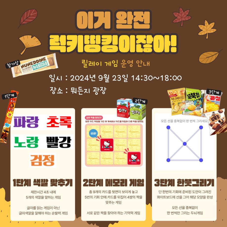 활동내용 : 릴레이게임(색깔 맞추기, 메모리게임, 한붓그리기) 진행, 사과데이 엽서 선접수