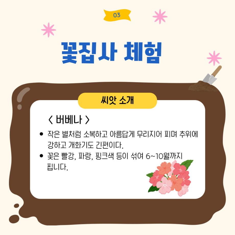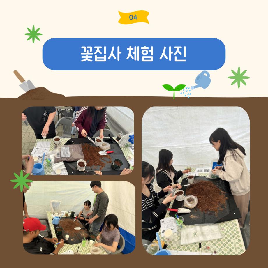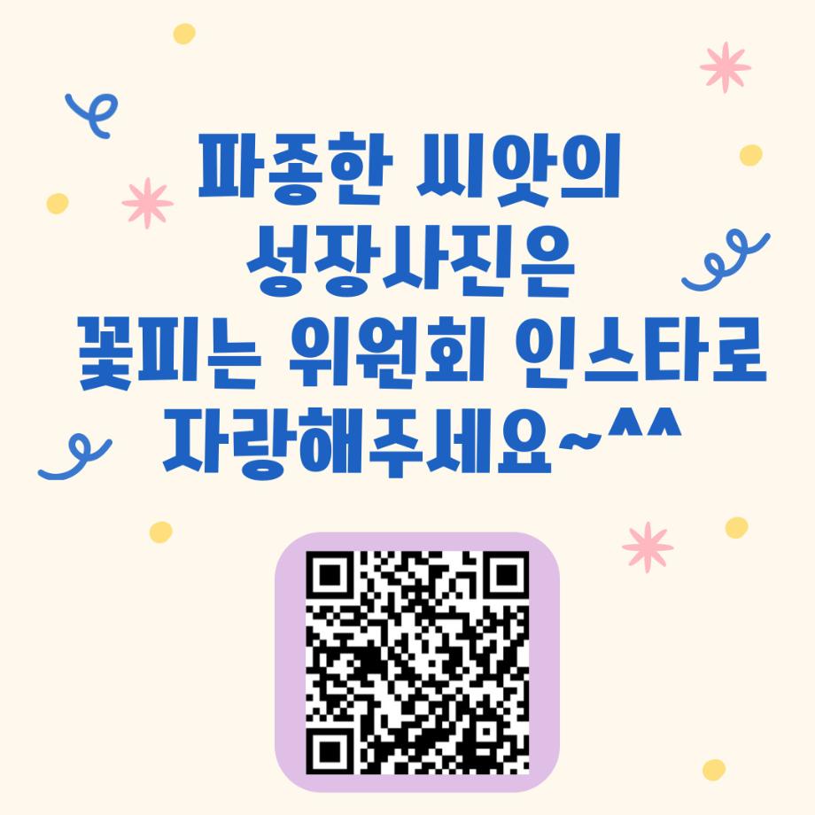 본문 시작 홈으로 포토갤러리 학생위원회 개요 학생위원회 소개 공지사항 활동결과 홈페이지가이드 포토갤러리 페이스북 트위터 프린트 [꽃피는 위원회] 제 4회 사랑의 꽃집사 체험이벤트 학생처 1280 2025-05-28 [꽃피는 위원회] 제 4회 사랑의 꽃집사 체험이벤트 1. 일시: 5월 22일 12시~15시 2. 장소: 학생회관 앞 광장 3. 참여인원: 본교 구성원 114명 참여 4. 행사내용: 랜덤돌리기를 통한 씨앗 선정 후 씨앗 파종 진행, 참여완료자에 한해 만족도 조사 실시 5. 행사 만족도 조사 : 4.9/5.0 목록 이전[약속하는 위원회] 달려라 에코레이서 다음 [생각하는 위원회] 대형 현수막 문구 공모전 'Hear, 위로' 담당부서 : 장학복지팀 담당자 : - 연락처 : 043-649-1142 최종수정일 : 2024-10-26 만족도조사 만족도 조사 이 페이지에서 제공하는 정보에 대하여 만족하시나요? 매우만족 만족 보통 불만족 매우불만족